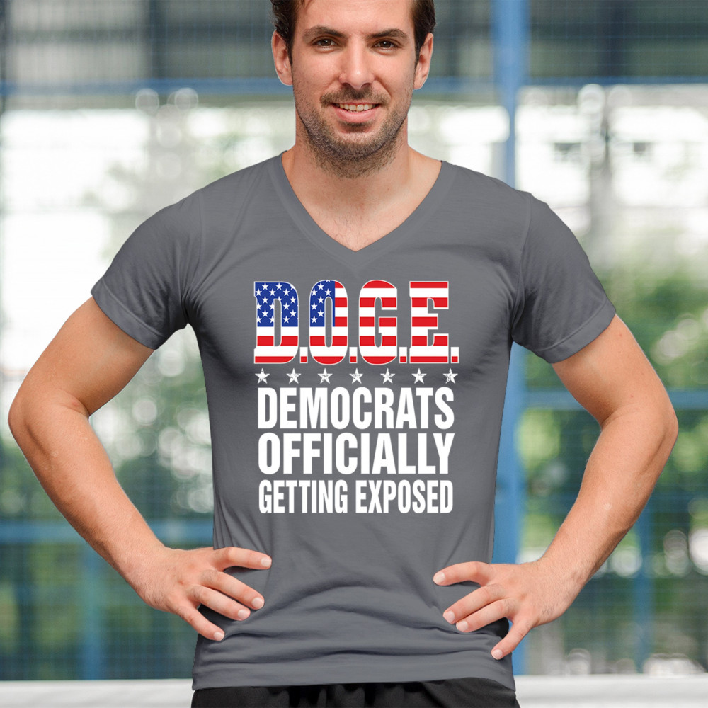 The D.O.G.E. Democrats Officially Getting Exposed design features bold text packed with patriotic flair and political edge. Stars-and-stripes fill the acronym while the clean layout delivers a direct anti-liberal message. Ideal for conservatives, libertarians, and free-speech defenders at rallies, campaign events, or daily wear.
