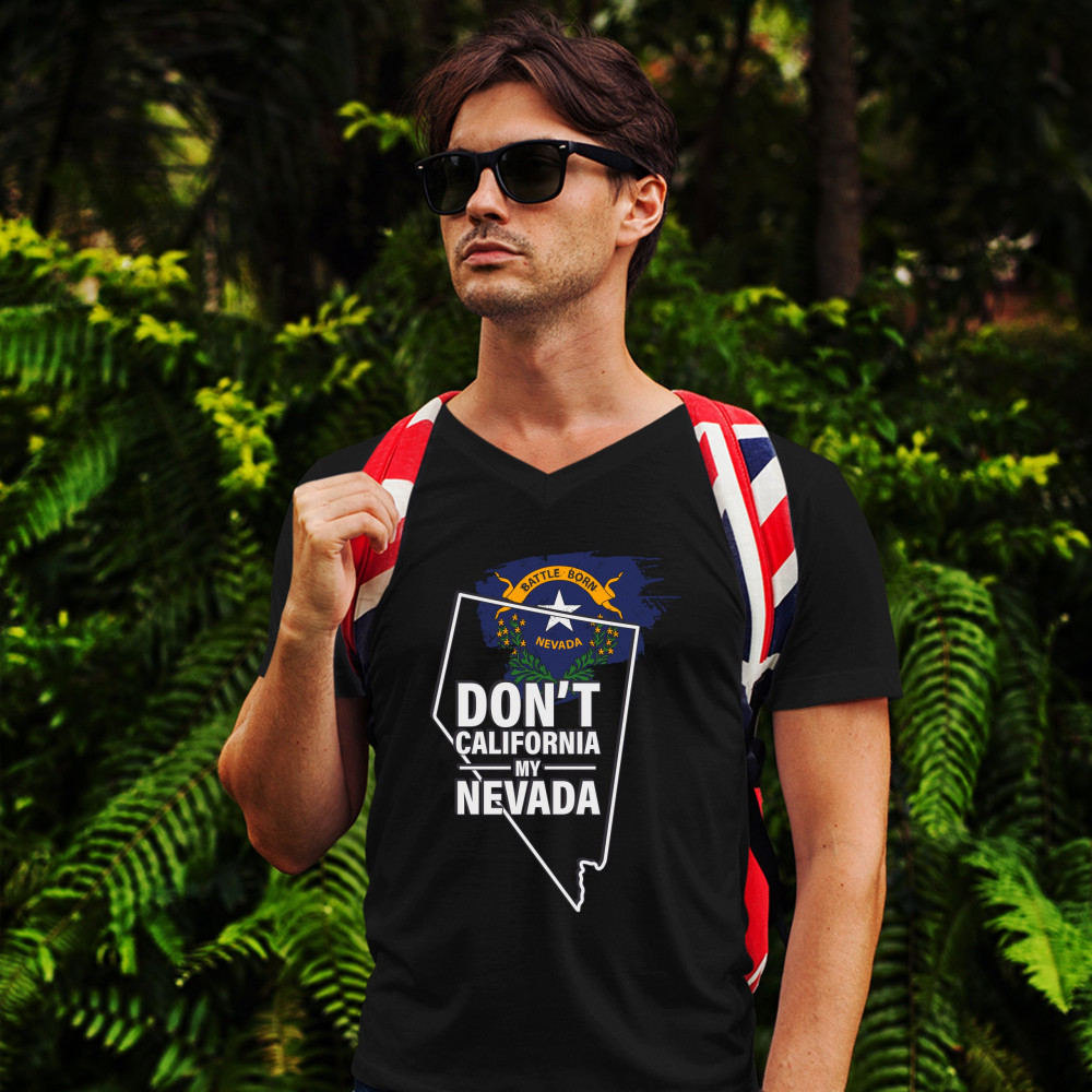 A political print featuring a silhouette of the state of Nevada and it's flag on the inside. The print says: "Don't California my Nevada". A great choice for anyone who is concerned for a huge number of Californians moving to their beloved state.