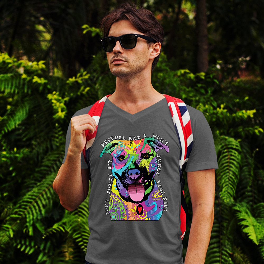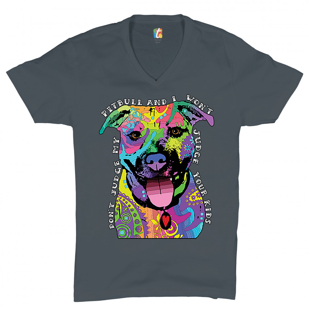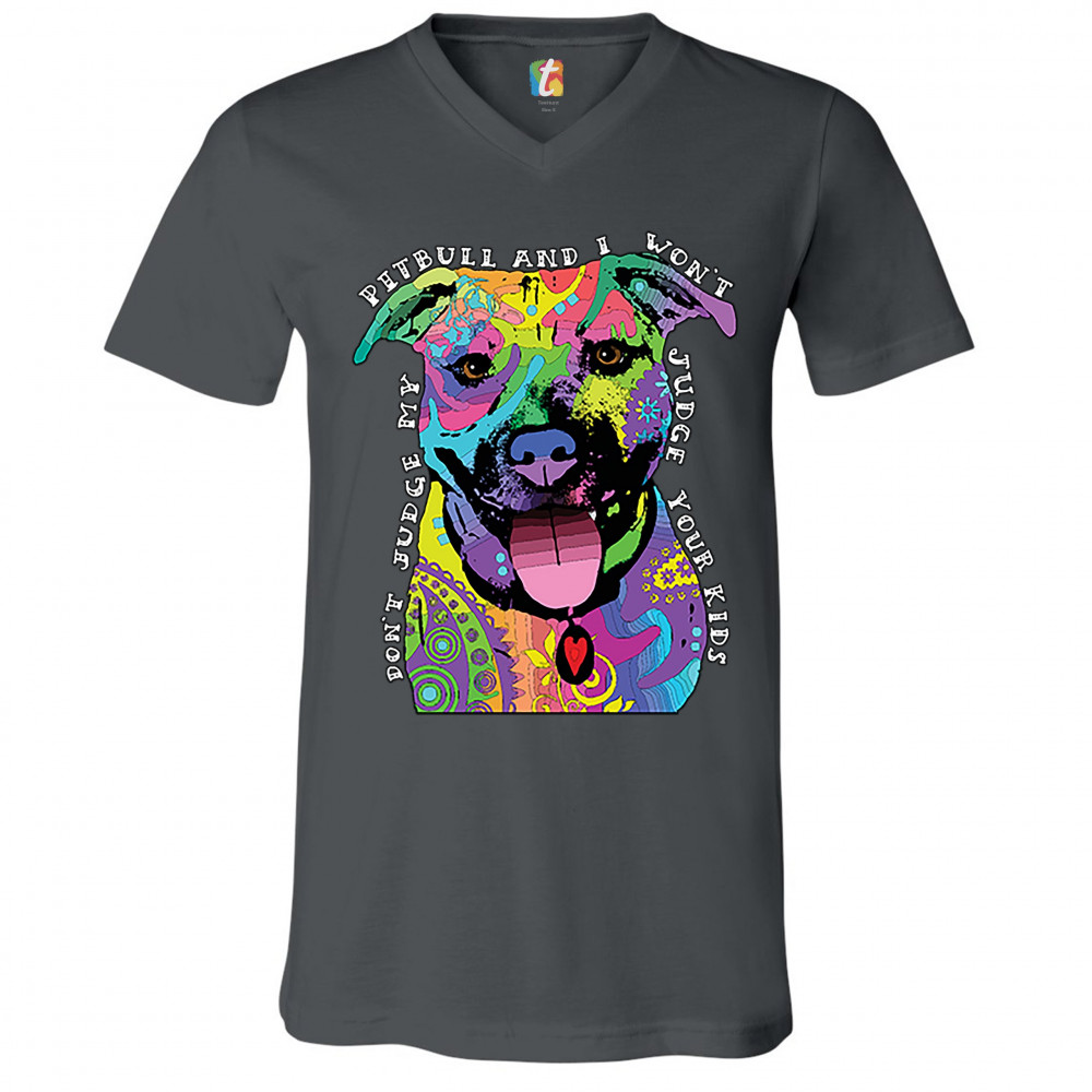 DON'T JUDGE MY PIT BULL v-neck t-shirt funny andy maxx dog lover pet owner tee charcoal