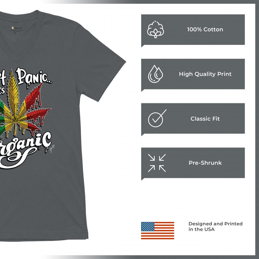 Stay cool and collected with our "Don't Panic...It's Organic" tee. Perfect for those who love life au naturel. It's more than a shirt—it's a lifestyle!