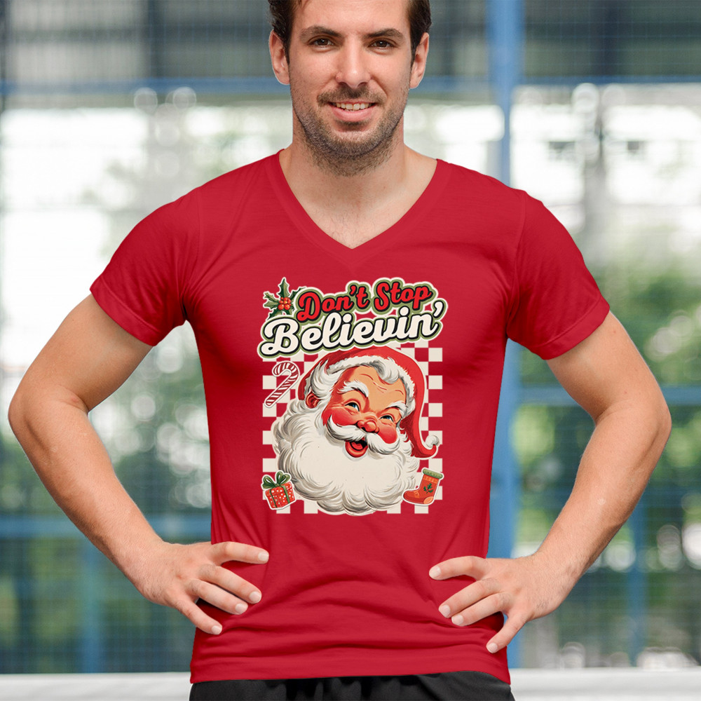 Spread holiday cheer with this “Don’t Stop Believing†Santa Claus shirt that blends classic Christmas spirit with cozy winter charm. Perfect for festive parties, family gatherings, or relaxing by the fire, this design captures Jingle Bells joy, Merry Xmas fun, Santa Claus magic, Reindeer delight, Rudolph glow, Snowman charm, and Christmas tree style for the perfect seasonal outfit.
