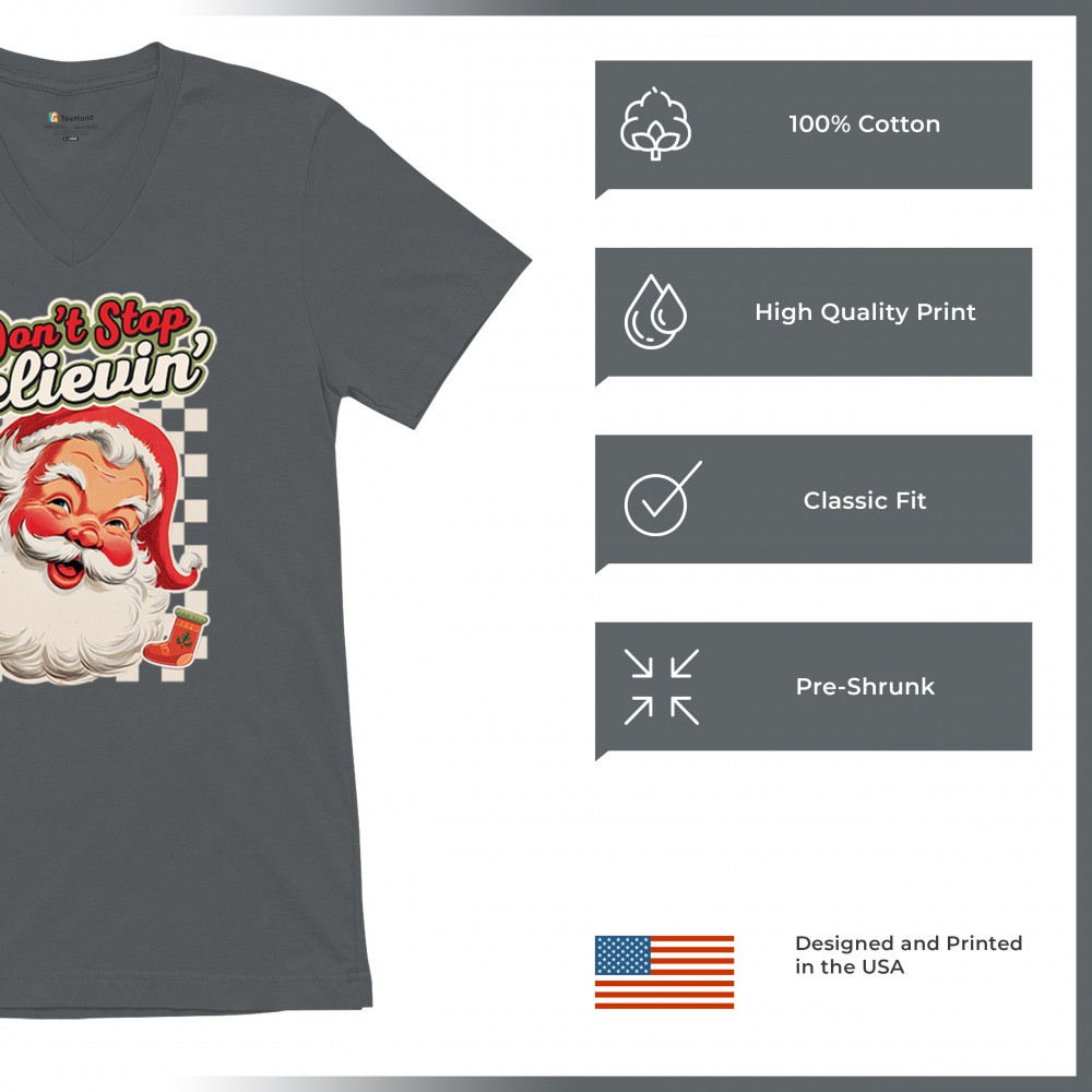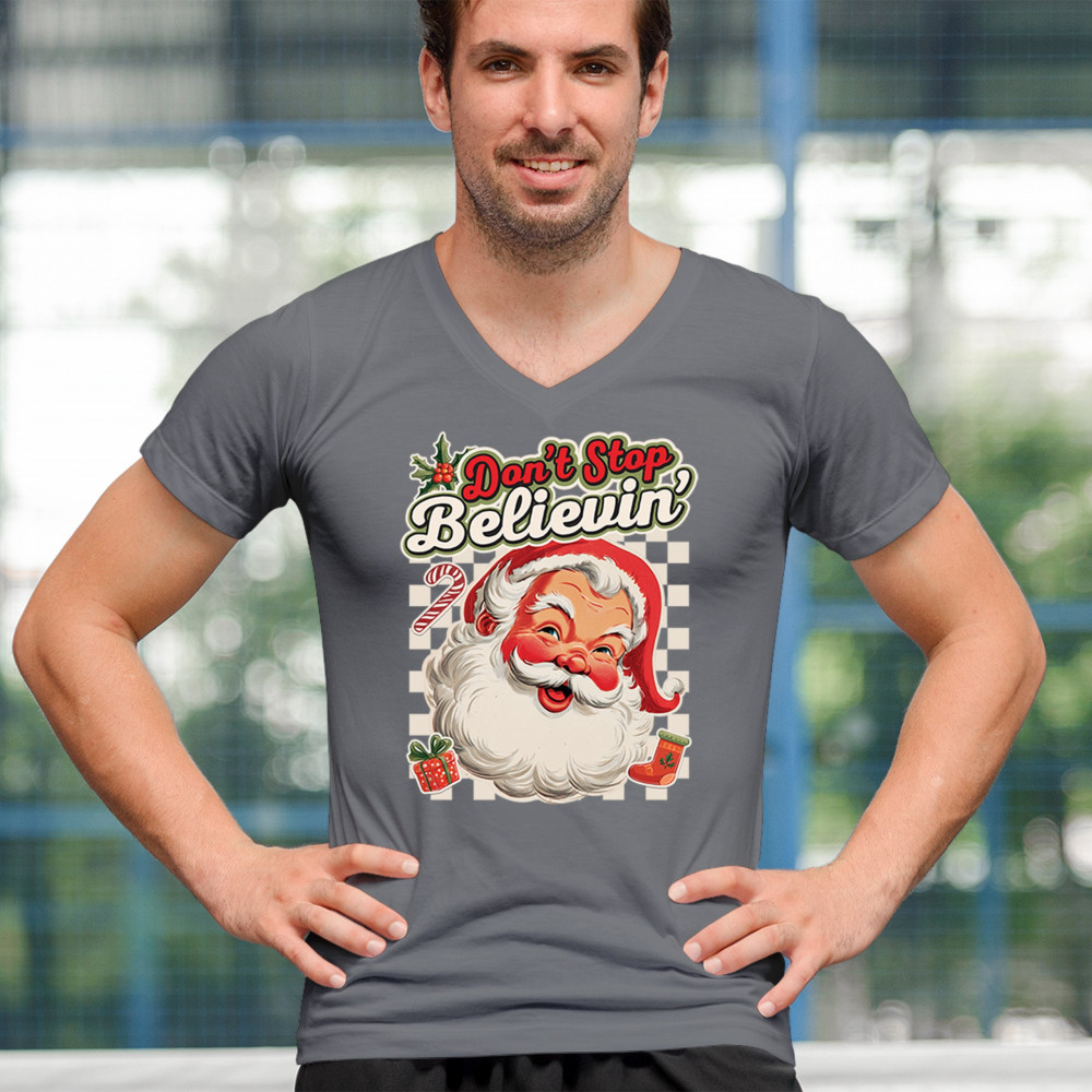 Spread holiday cheer with this “Don’t Stop Believing†Santa Claus shirt that blends classic Christmas spirit with cozy winter charm. Perfect for festive parties, family gatherings, or relaxing by the fire, this design captures Jingle Bells joy, Merry Xmas fun, Santa Claus magic, Reindeer delight, Rudolph glow, Snowman charm, and Christmas tree style for the perfect seasonal outfit.