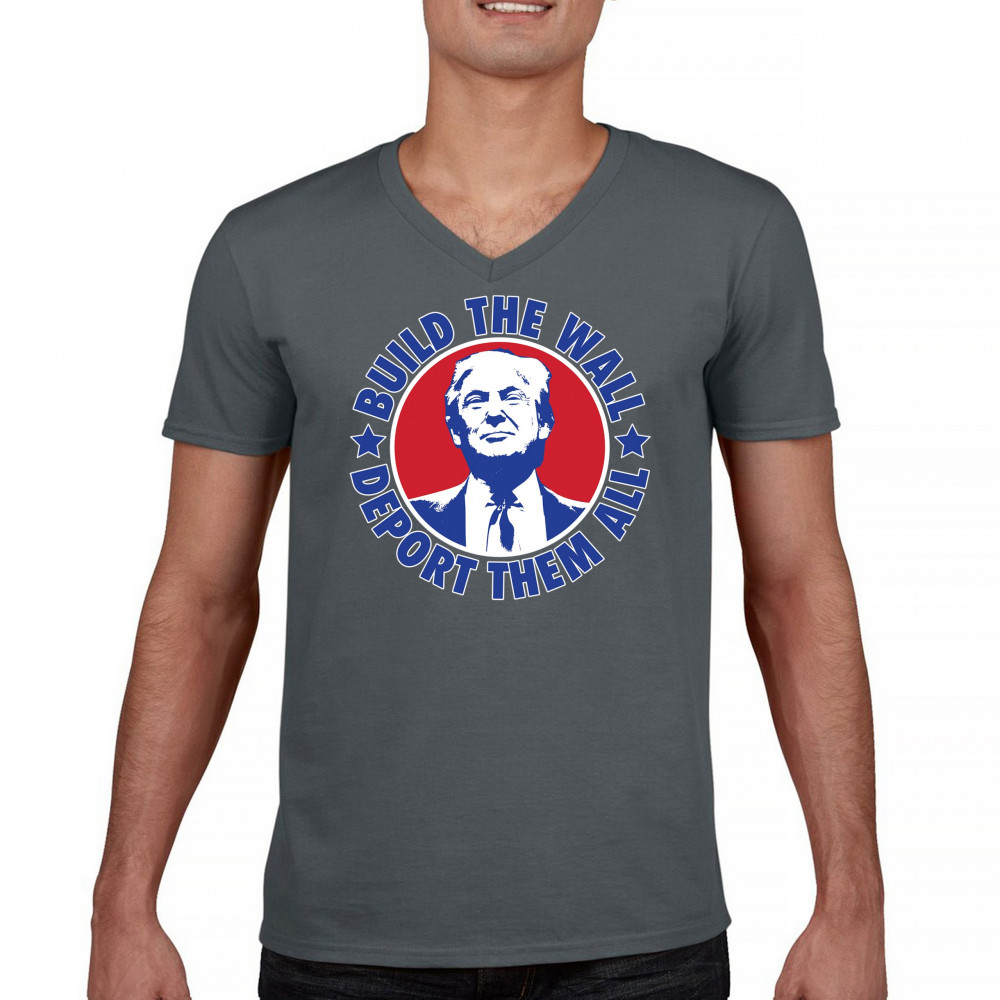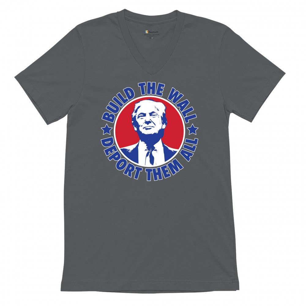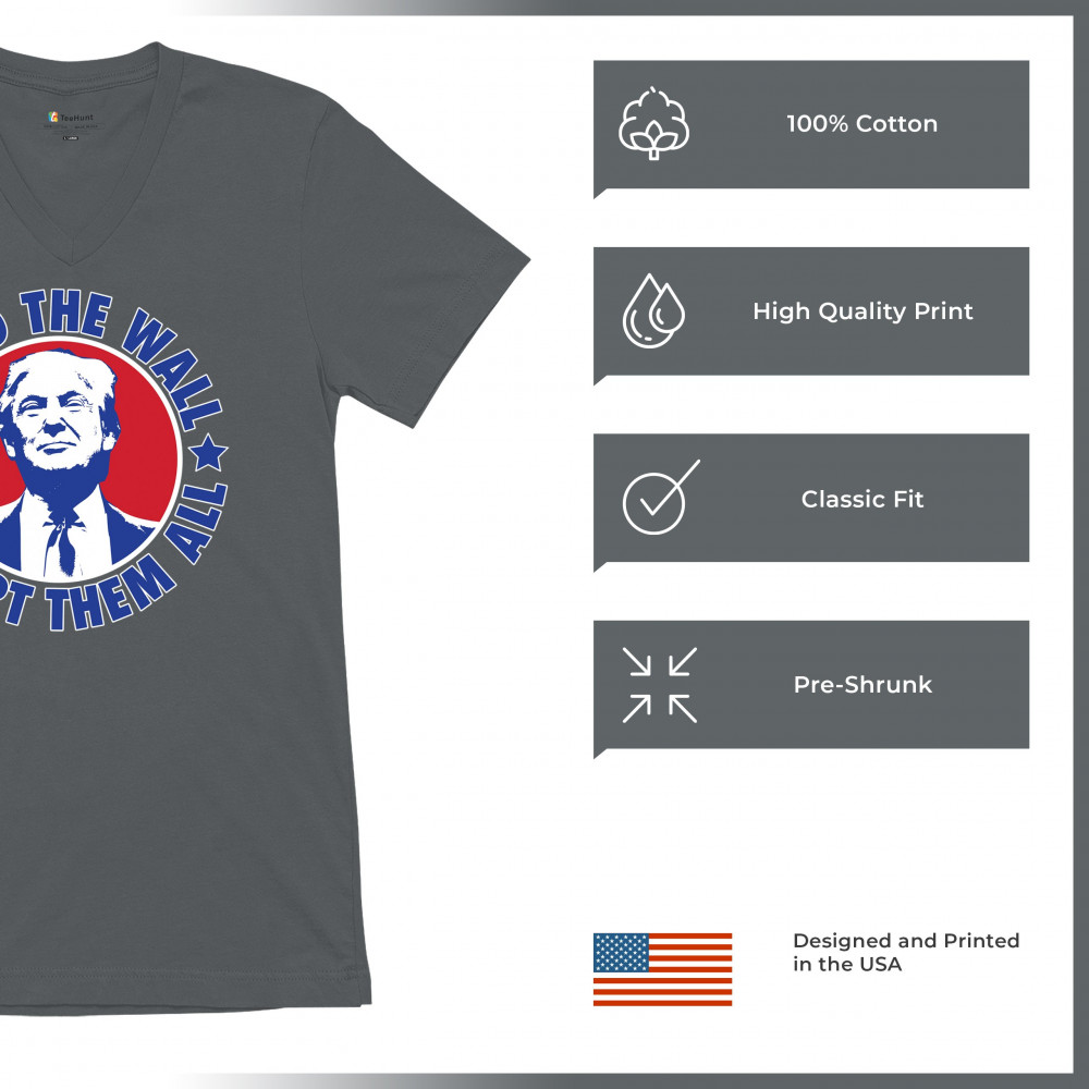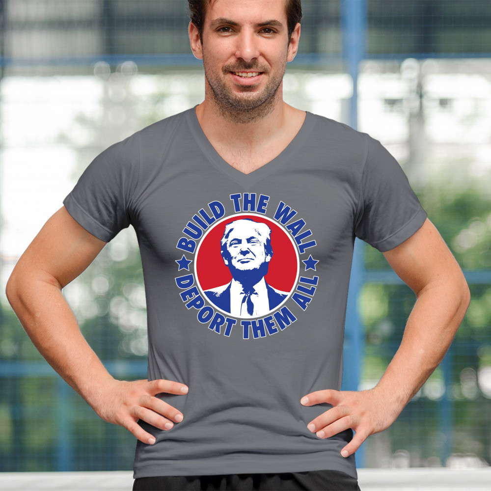 Showcase your unwavering support with a bold design that champions America first. Featuring the "Build the Wall Deport Them All Trump 2024" message, this piece is a must-have for conservatives, symbolizing trust in God over government, and a commitment to never surrender. Adorned with the American flag and a call to rebelution, it's perfect for any Trump supporter ready to stand against the tide.