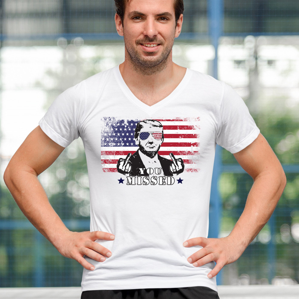 Embrace the spirit of patriotism and resilience with this powerful design showcasing Donald Trump in bold American flag sunglasses. Ideal for Trump rallies, political gatherings, and other patriotic events, this graphic is perfect for conservatives and Republicans alike. Show your unwavering support for Trump and the belief in making America great again. This striking design is not only a great addition to your wardrobe but also an excellent gift for fellow supporters. Wear it with pride and join the movement today.