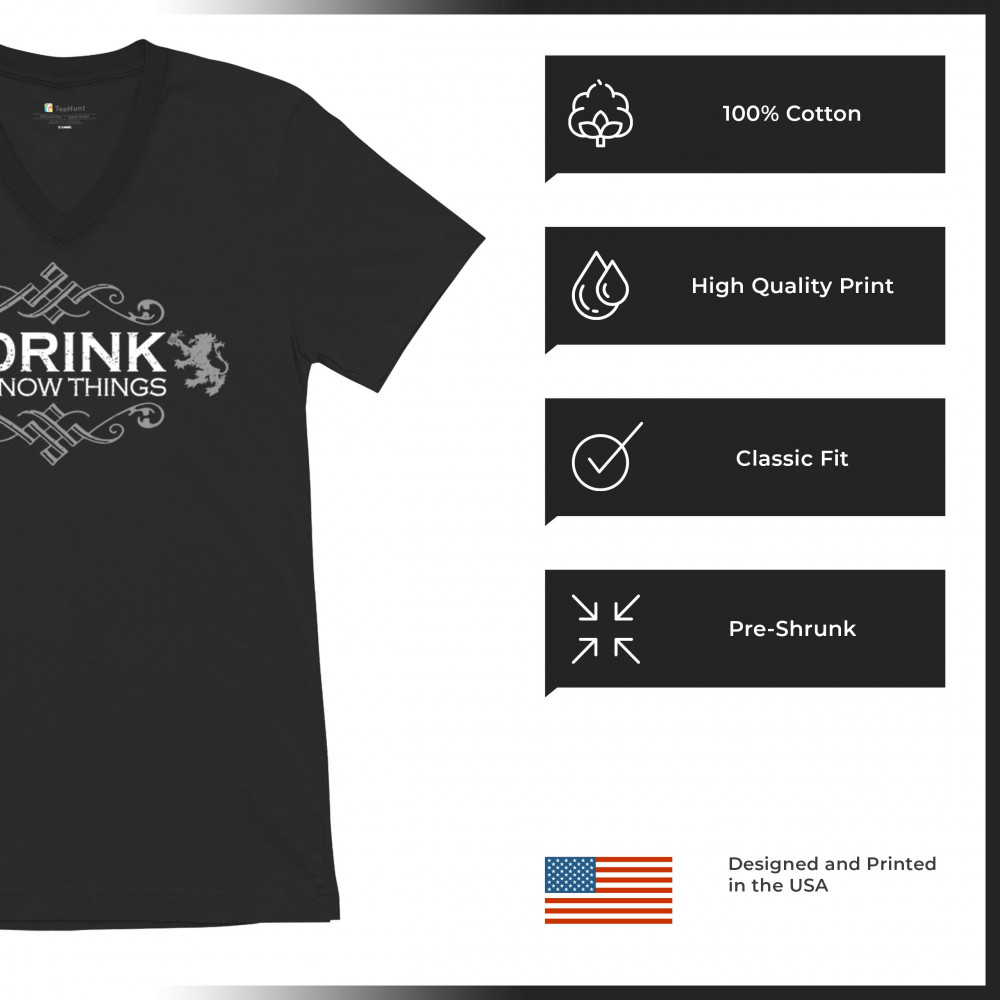 DRINK & KNOW THINGS v-neck t-shirt drinking humor witty alcohol clever bar tee black