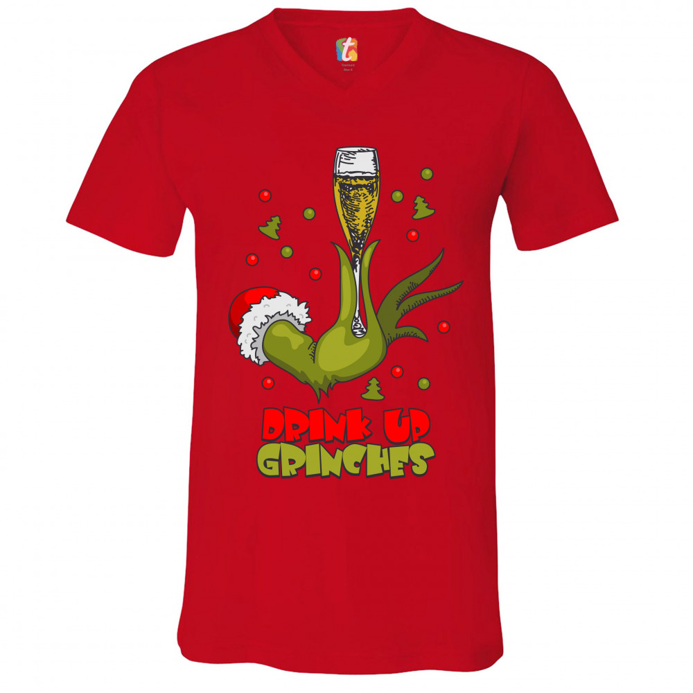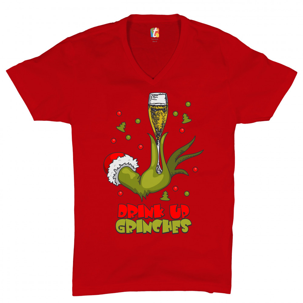 DRINK UP GRINCHES v-neck t-shirt funny christmas drinking tee red