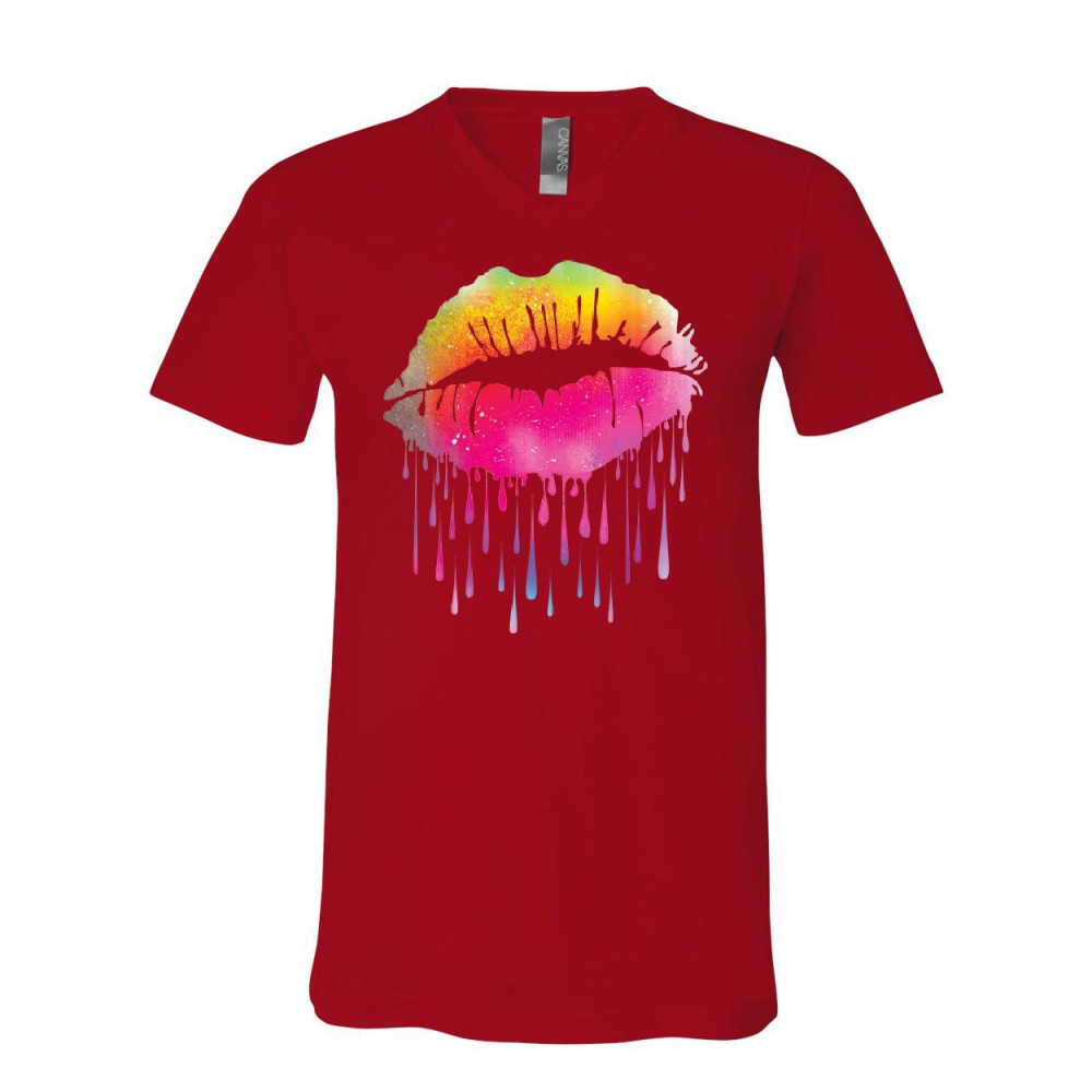 DRIPPING NEON LIPS v-neck t-shirt lips like sugar kiss love sexy melt tee red