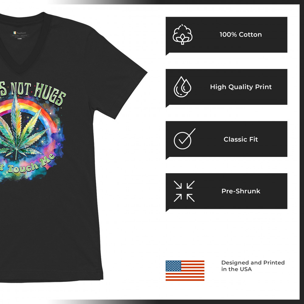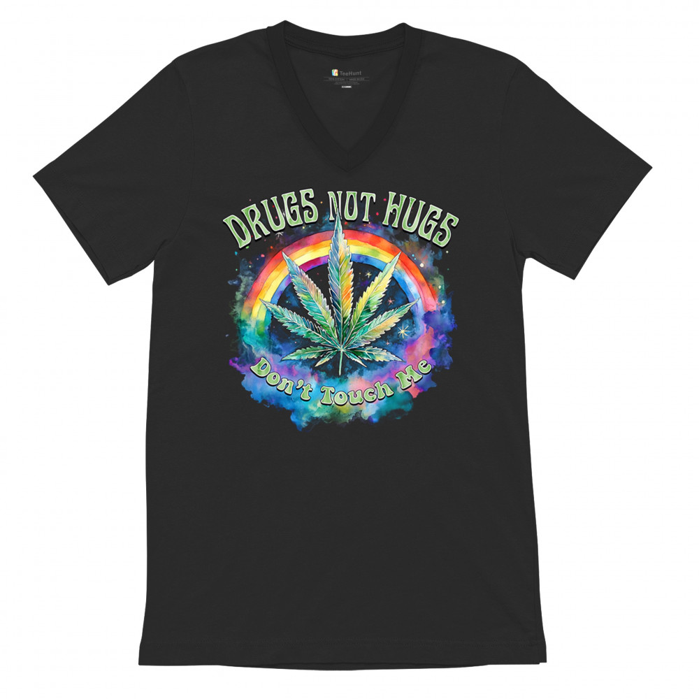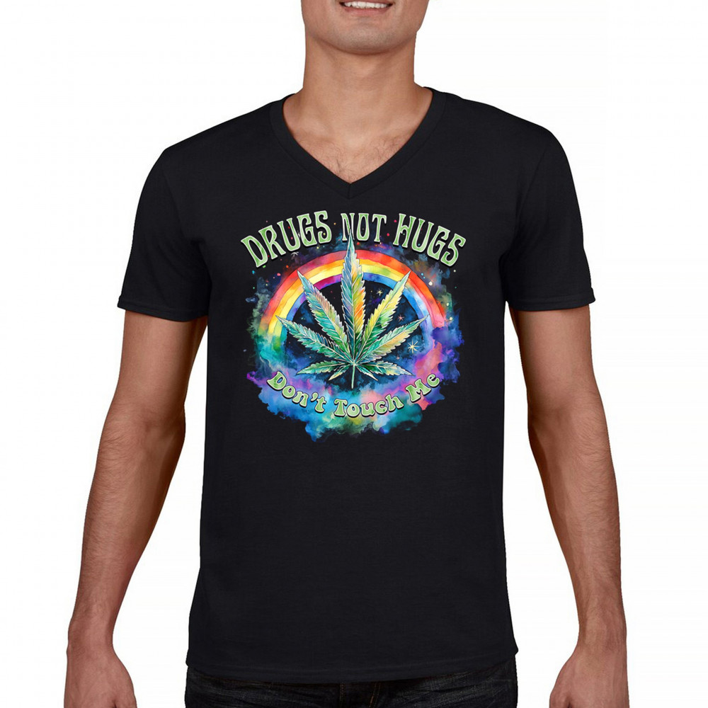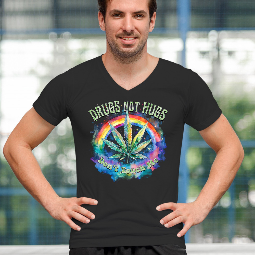 DRUGS NOT HUGS men's v-neck t-shirt funny cannabis marijuana 420 weed pothead black