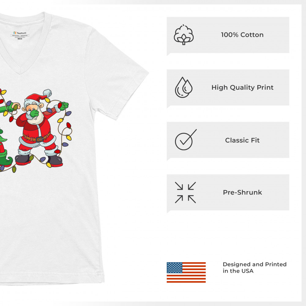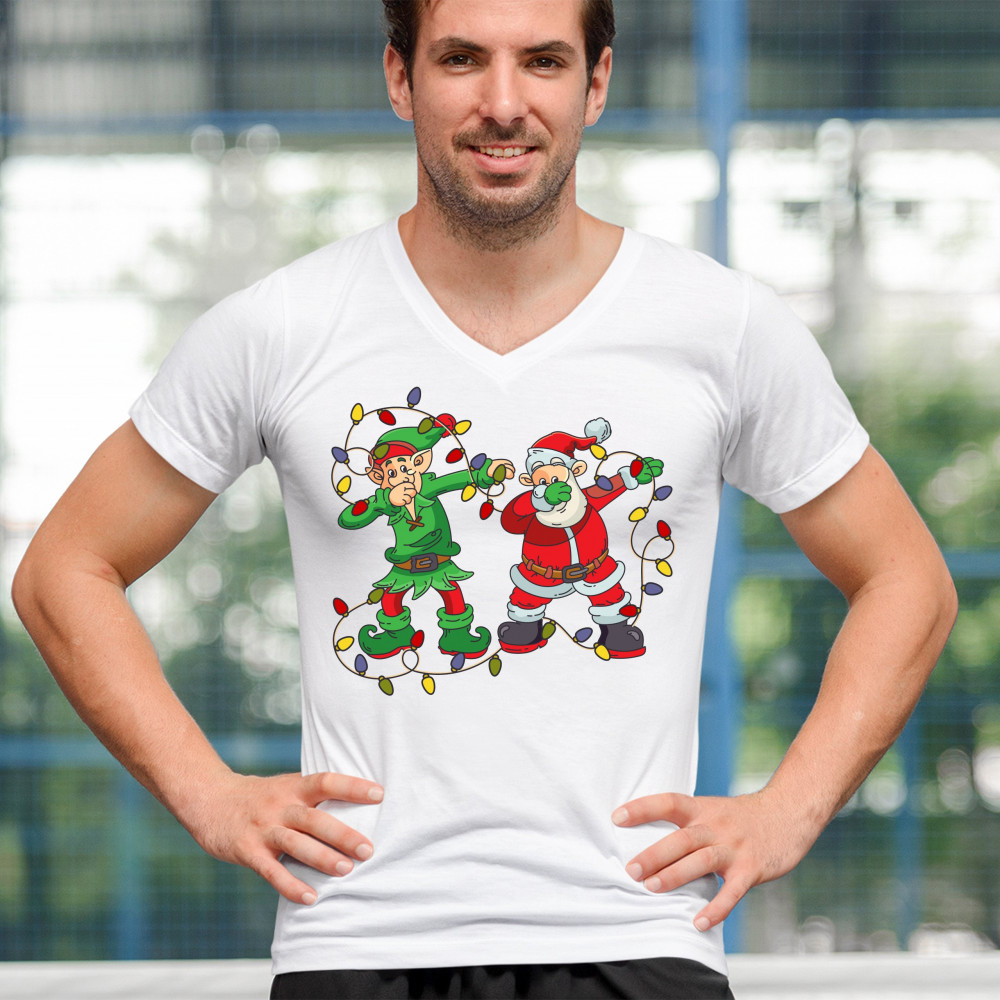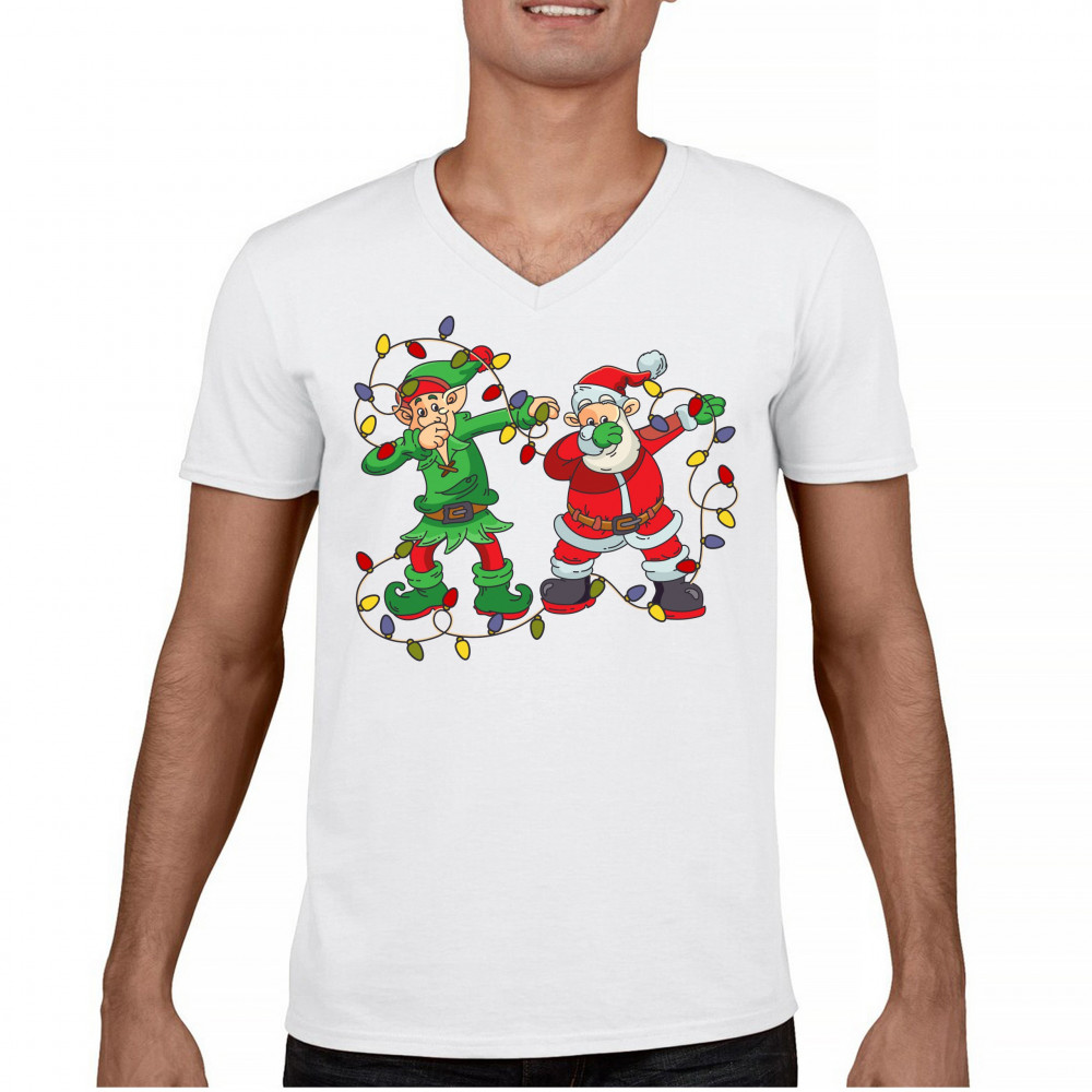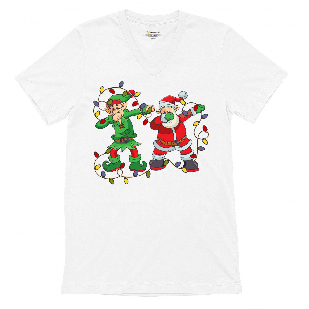 ELF AND SANTA CLAUS DAB DANCING v-neck t-shirt merry and bright christmas tee white