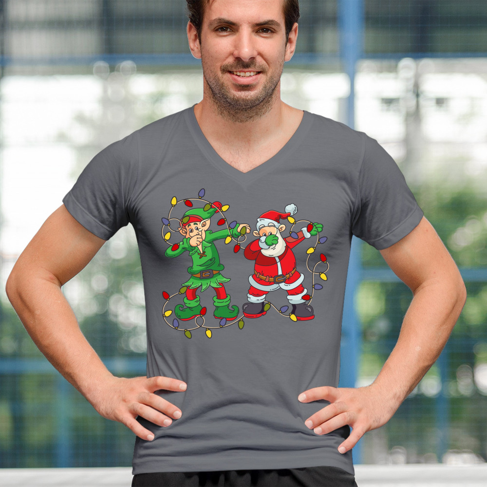 ELF AND SANTA CLAUS DAB DANCING v-neck t-shirt merry and bright christmas tee charcoal