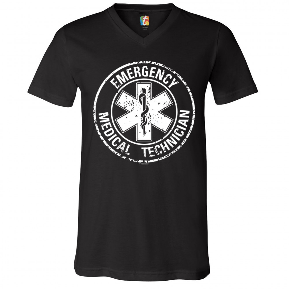 EMERGENCY MEDICAL TECHNICIAN v-neck t-shirt emt distressed star of life tee black