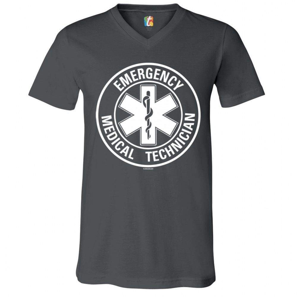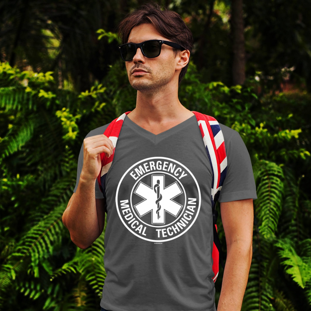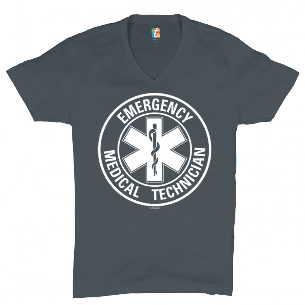 EMERGENCY MEDICAL TECHNICIAN v-neck t-shirt star of life first responder tee charcoal