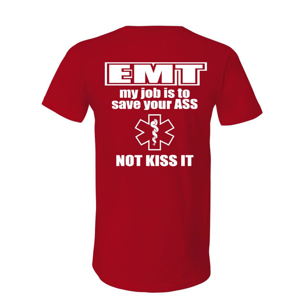 EMT MY JOB IS TO SAVE YOUR ASS v-neck t-shirt funny medic tee red