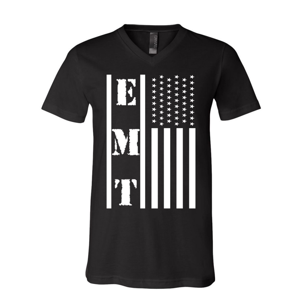 EMT STARS AND STRIPES v-neck t-shirt first responders paramedic ems tee black