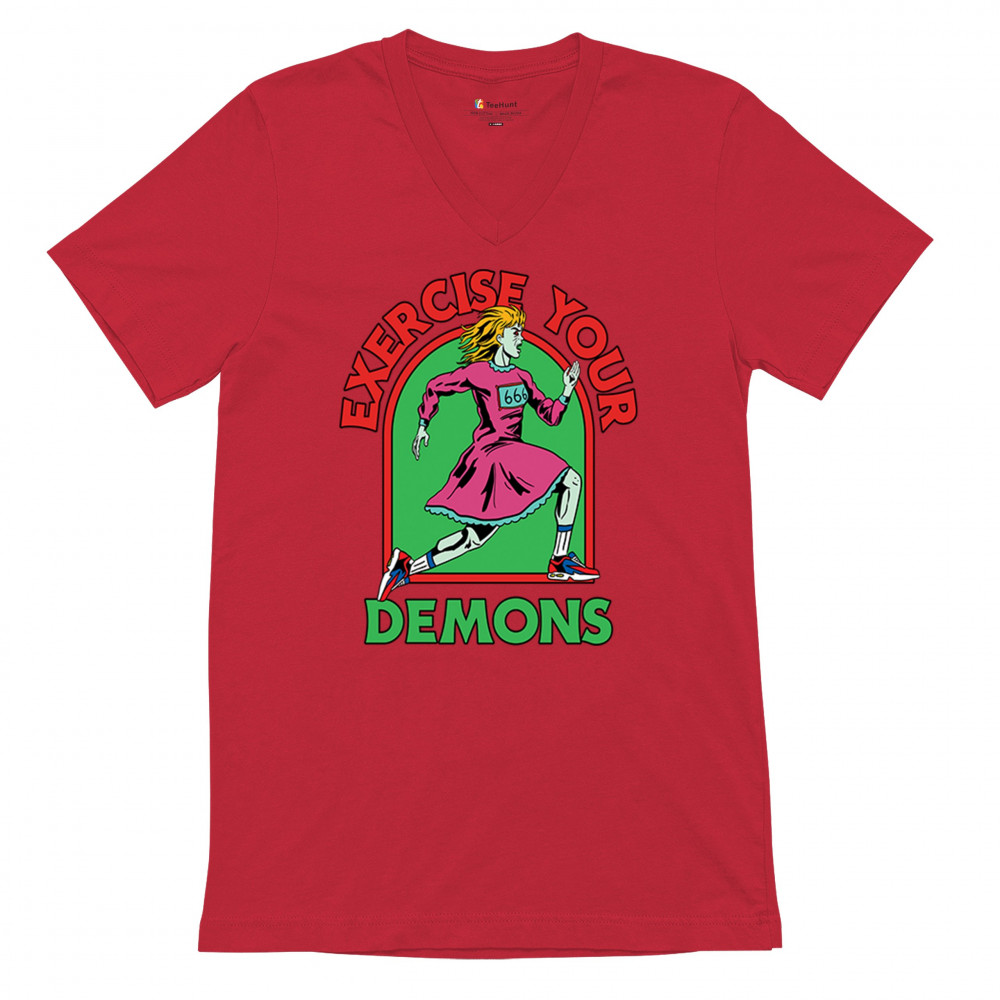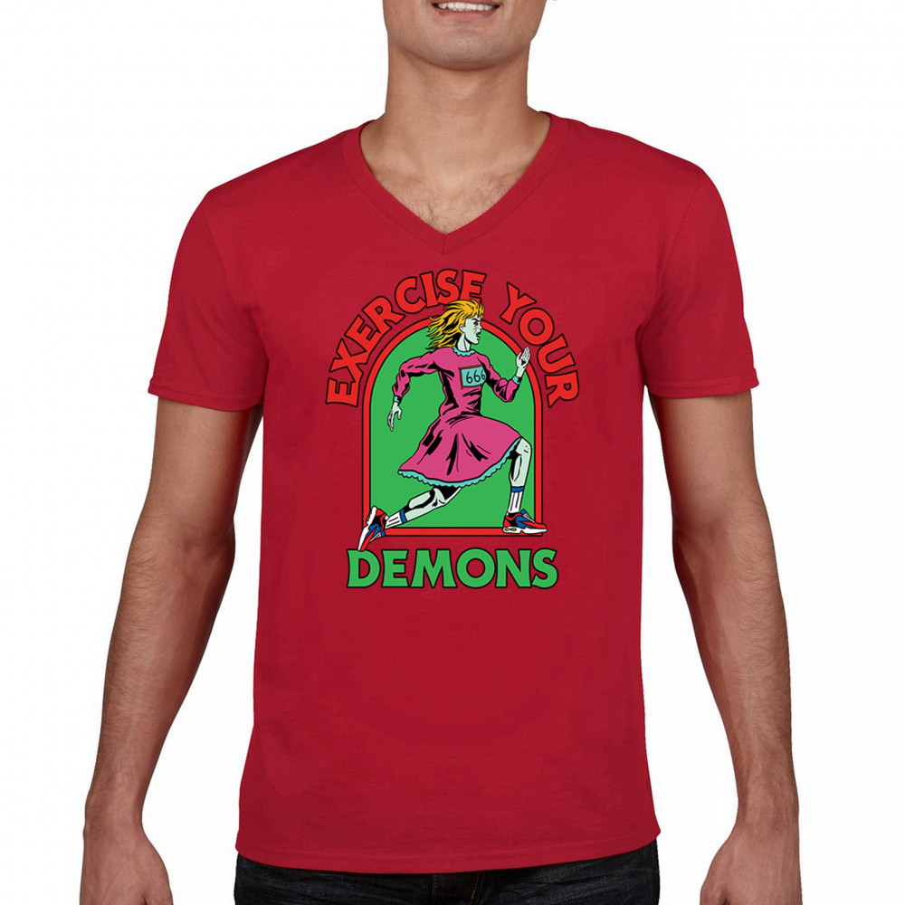 Exercise Your Demons shirt – funny halloween gym shirt with fitness humor, scary workout design, demon runner style, and spooky parody vibes.