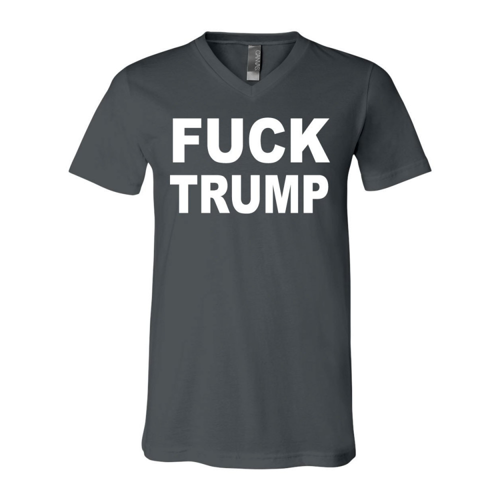 F**K TRUMP v-neck t-shirt anti trump political tee shirt charcoal