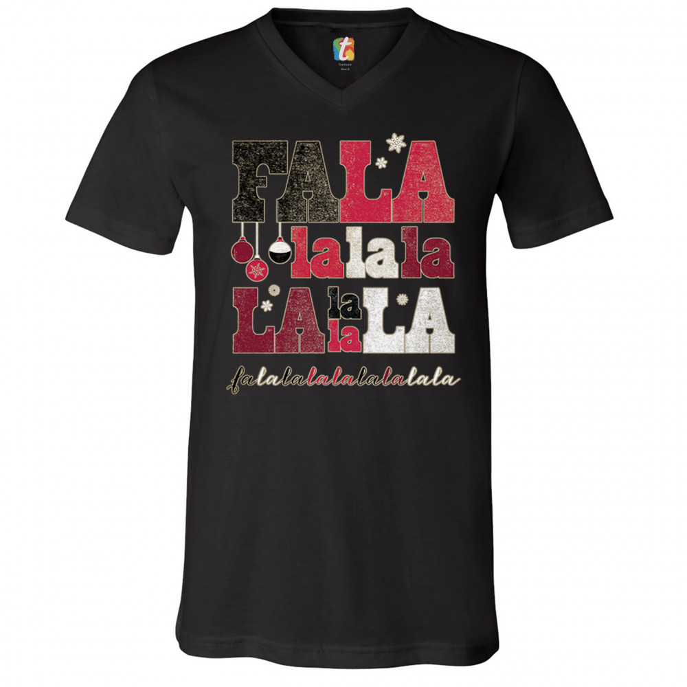 FA LA LA MERRY CHRISTMAS v-neck t-shirt deck the halls christmas party tee black