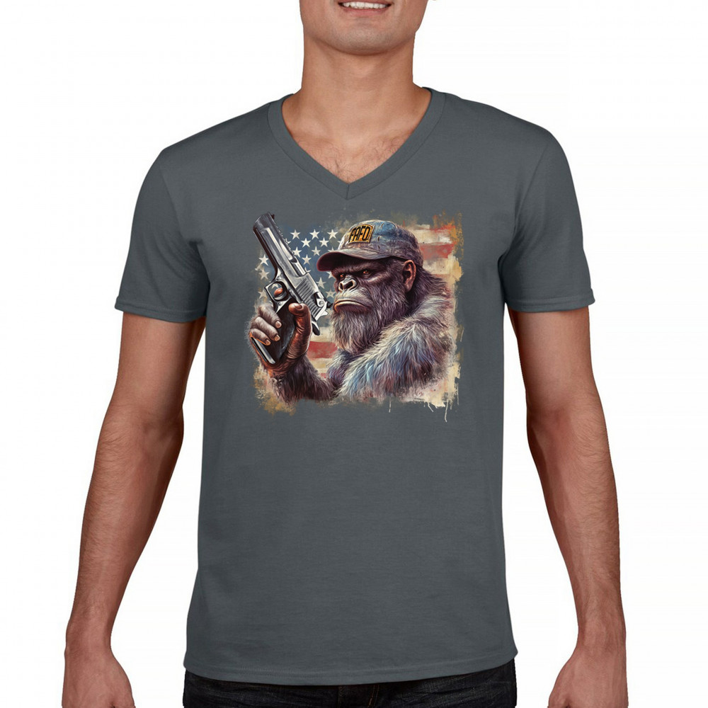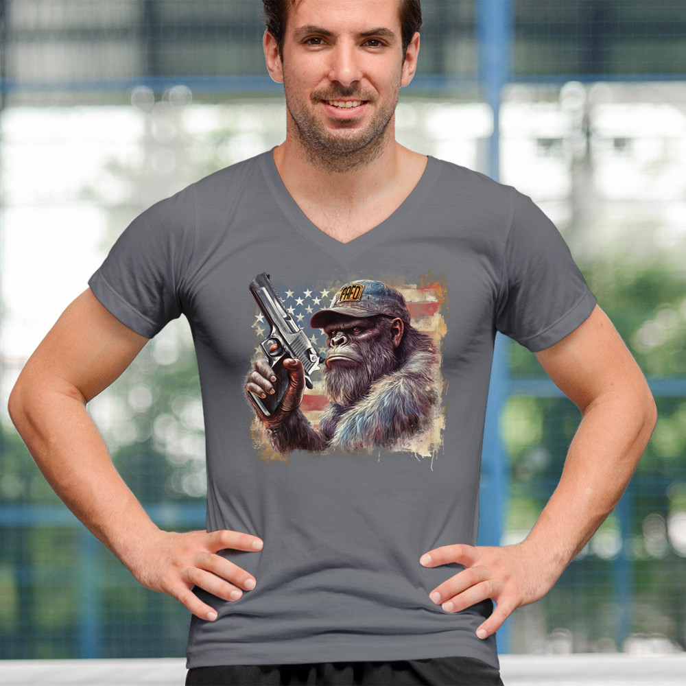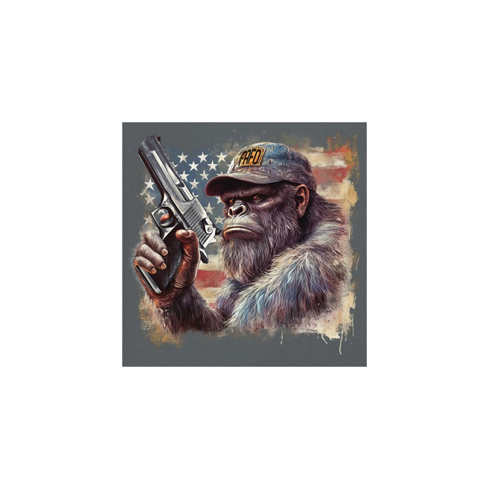 Show your Second Amendment pride with this bold patriotic gorilla design featuring the American flag and a firearm. Perfect for gun rights supporters, veterans, and freedom lovers.