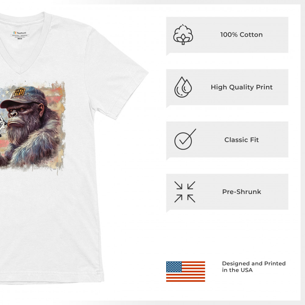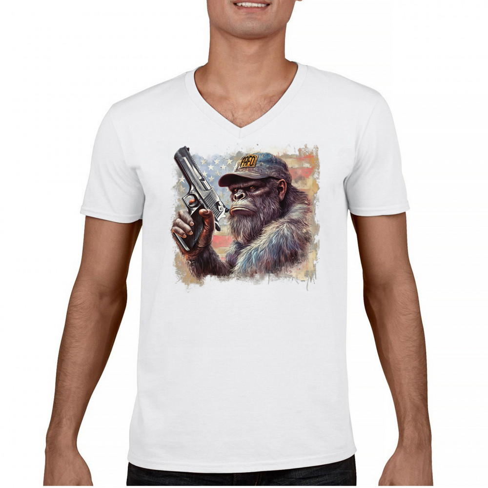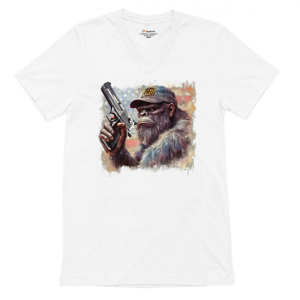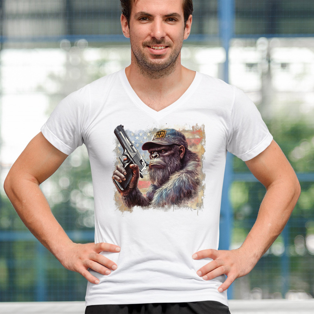 Show your Second Amendment pride with this bold patriotic gorilla design featuring the American flag and a firearm. Perfect for gun rights supporters, veterans, and freedom lovers.