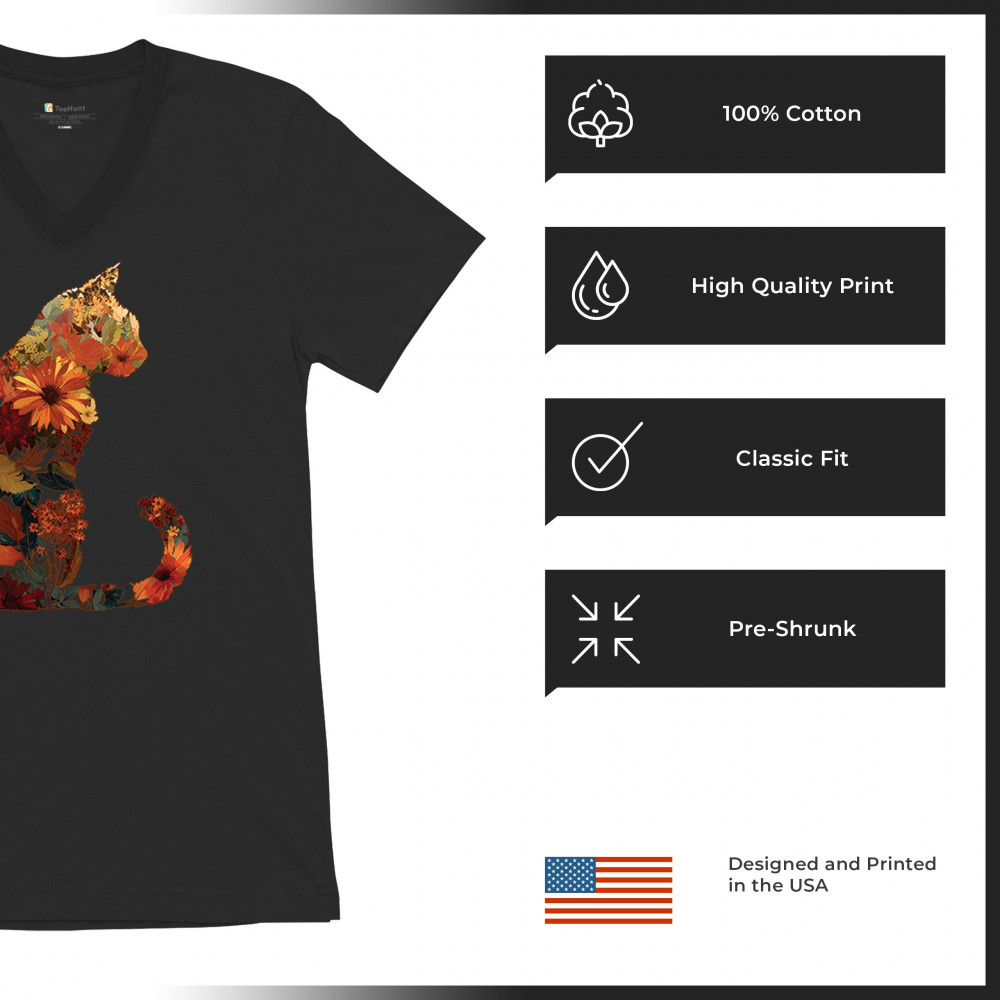 Bring autumn charm to your wardrobe with this cozy cat design filled with fall leaves and florals. Perfect for pet lovers, rustic farmhouse style, pumpkin patch outings, and fall festivals, it’s a unique way to showcase both your love of cats and seasonal harvest vibes.