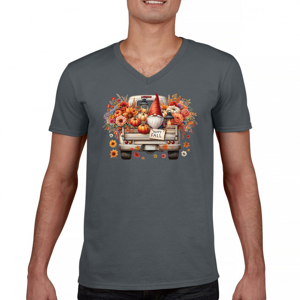 Rustic gnome truck design with pumpkins, wildflowers, and lantern glow. Perfect for Thanksgiving Day, farmhouse harvest, and cozy autumn style.