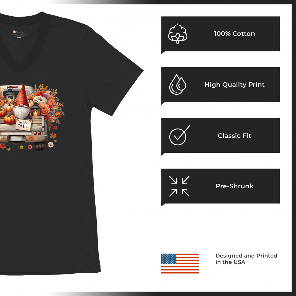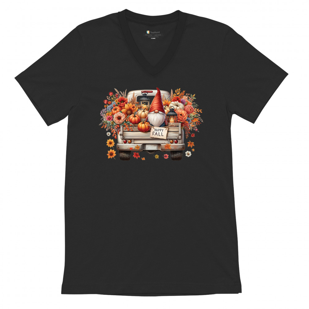 FALL GNOME TRUCK men's v-neck t-shirt pumpkin patch cozy thanksgiving harvest black