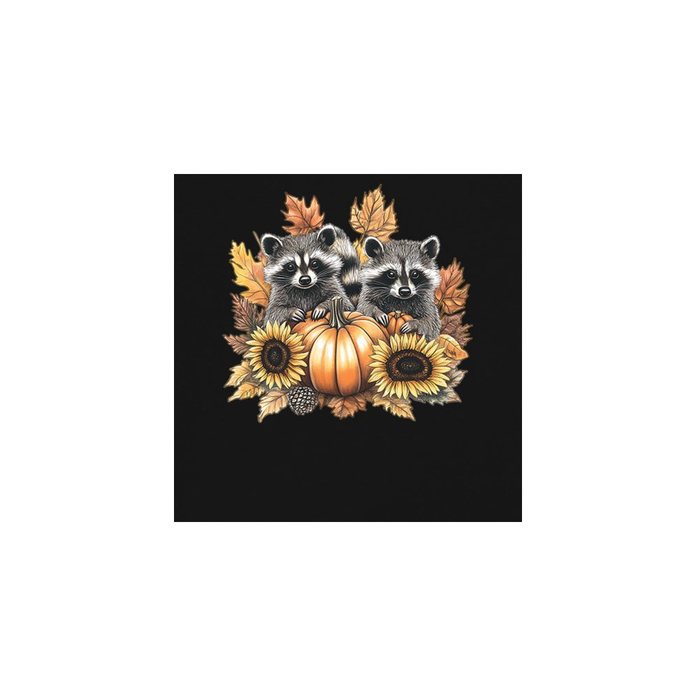 Rustic autumn raccoon design with pumpkins and sunflowers. Perfect for Thanksgiving, pumpkin patch days, farmhouse harvest, and woodland fall fashion.