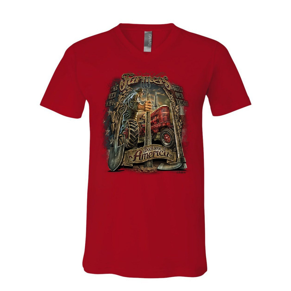 FARMERS BACKBONE OF AMERICA v-neck t-shirt countryside farming patriot tee red