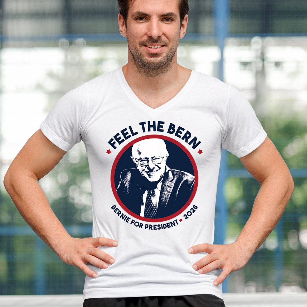 Show your commitment to democratic reform with this "Feel the Bern – Bernie for President 2028" design. Featuring Bernie Sanders’ portrait and patriotic colors, it’s perfect for political events, marches, or campaign volunteering. Wear it with pride at rallies, protests, or voter registration drives to back the progressive movement.