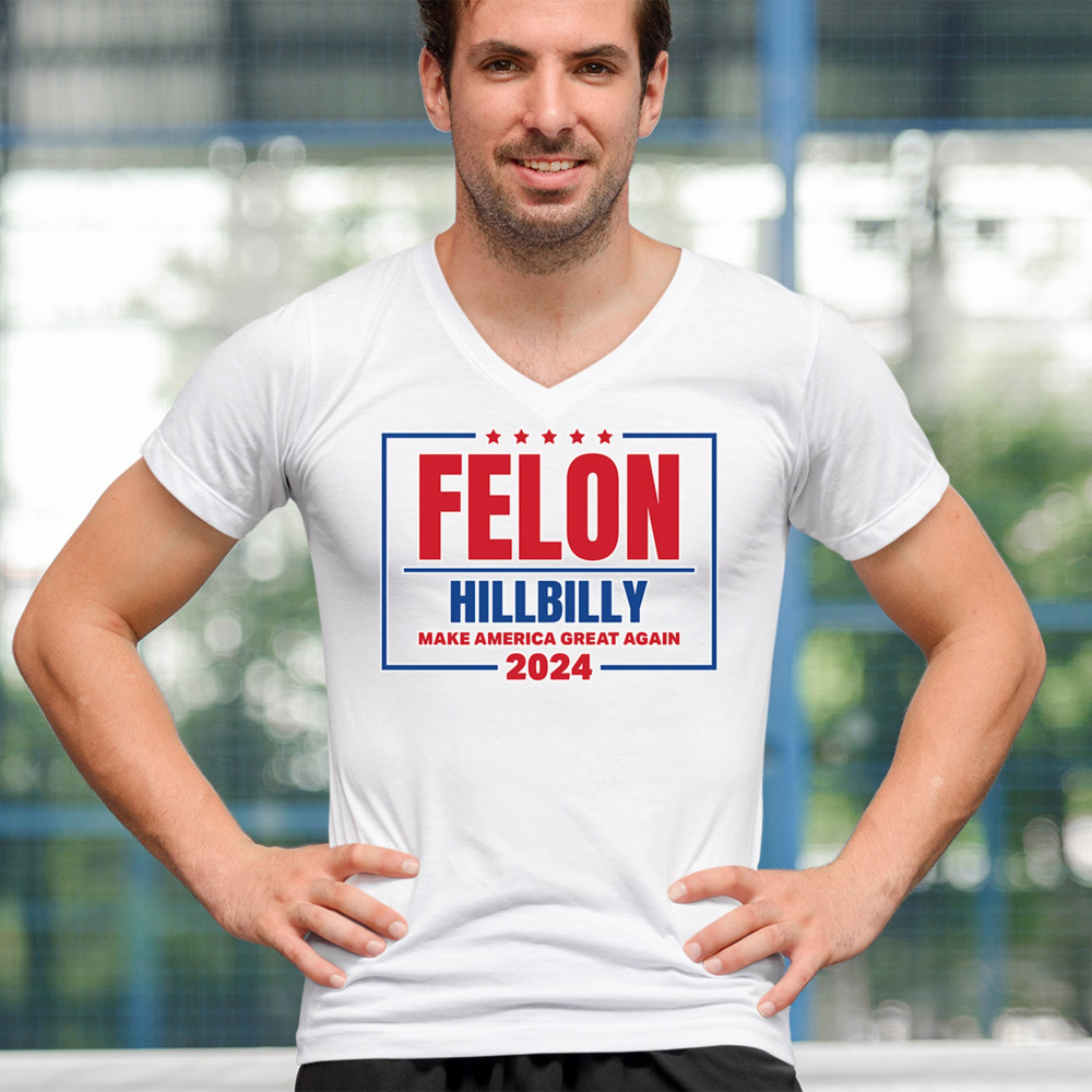 he "Felon Hillbilly 2024" design is perfect for Trump supporters, embodying conservative values and American pride.