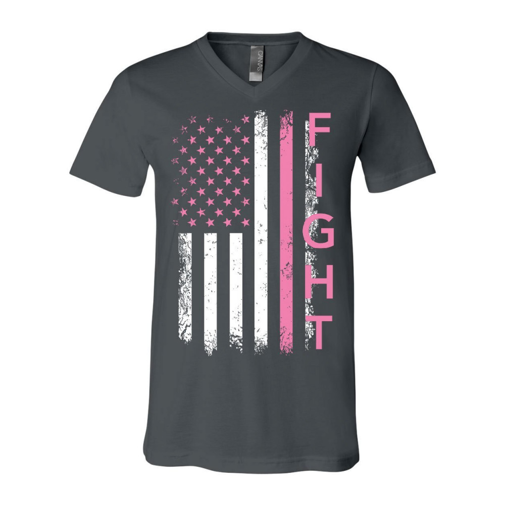 FIGHT CANCER PINK FLAG v-neck t-shirt breast cancer awareness tee charcoal