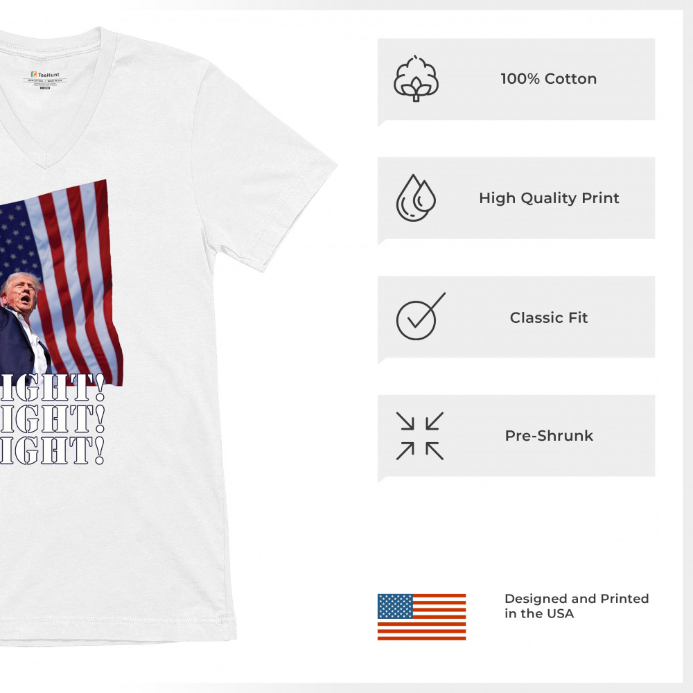 Show your support for Trump with this powerful design featuring him in front of the American flag. Perfect for rallies and daily wear.