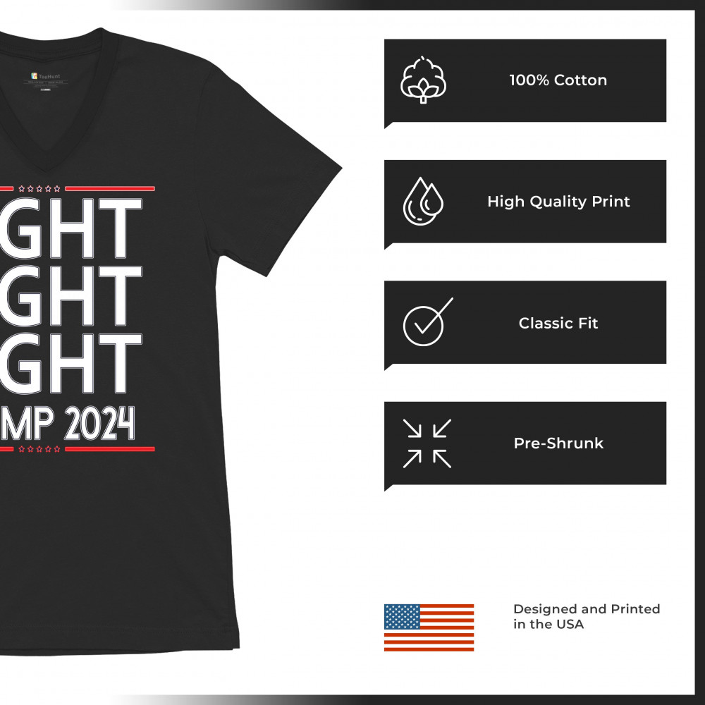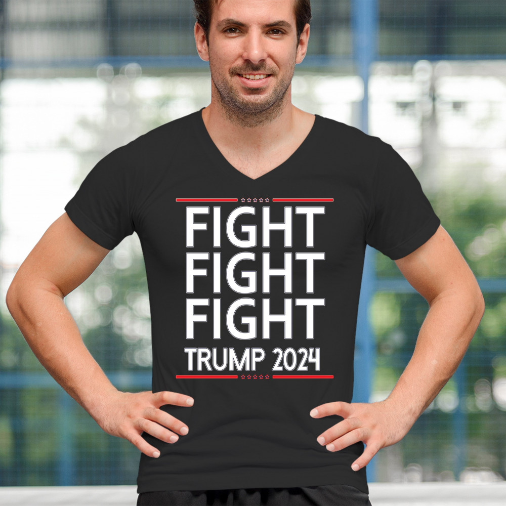 Show your Trump 2024 support with this bold "Fight Fight Fight" design. Perfect for rallies and everyday wear. Stand with America!