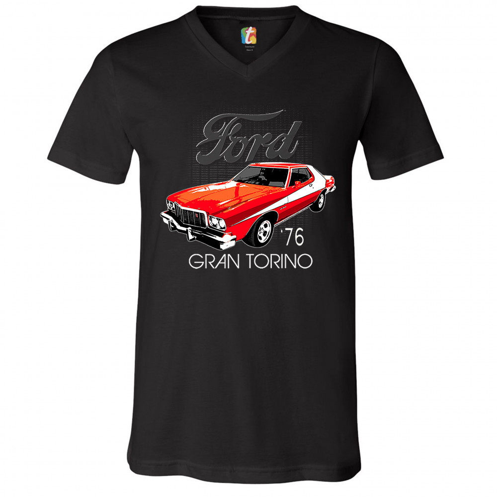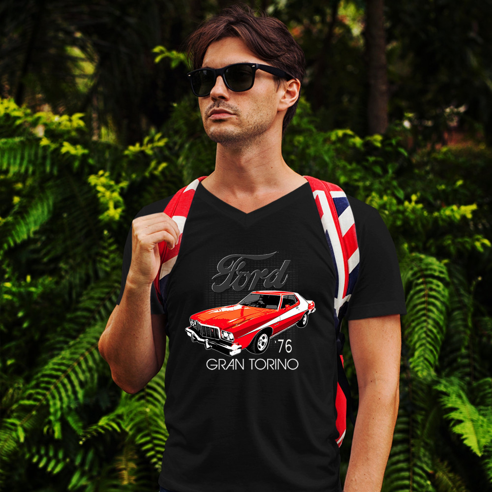 FORD '76 GRAN TORINO v-neck t-shirt 1976 american muscle car licensed tee black