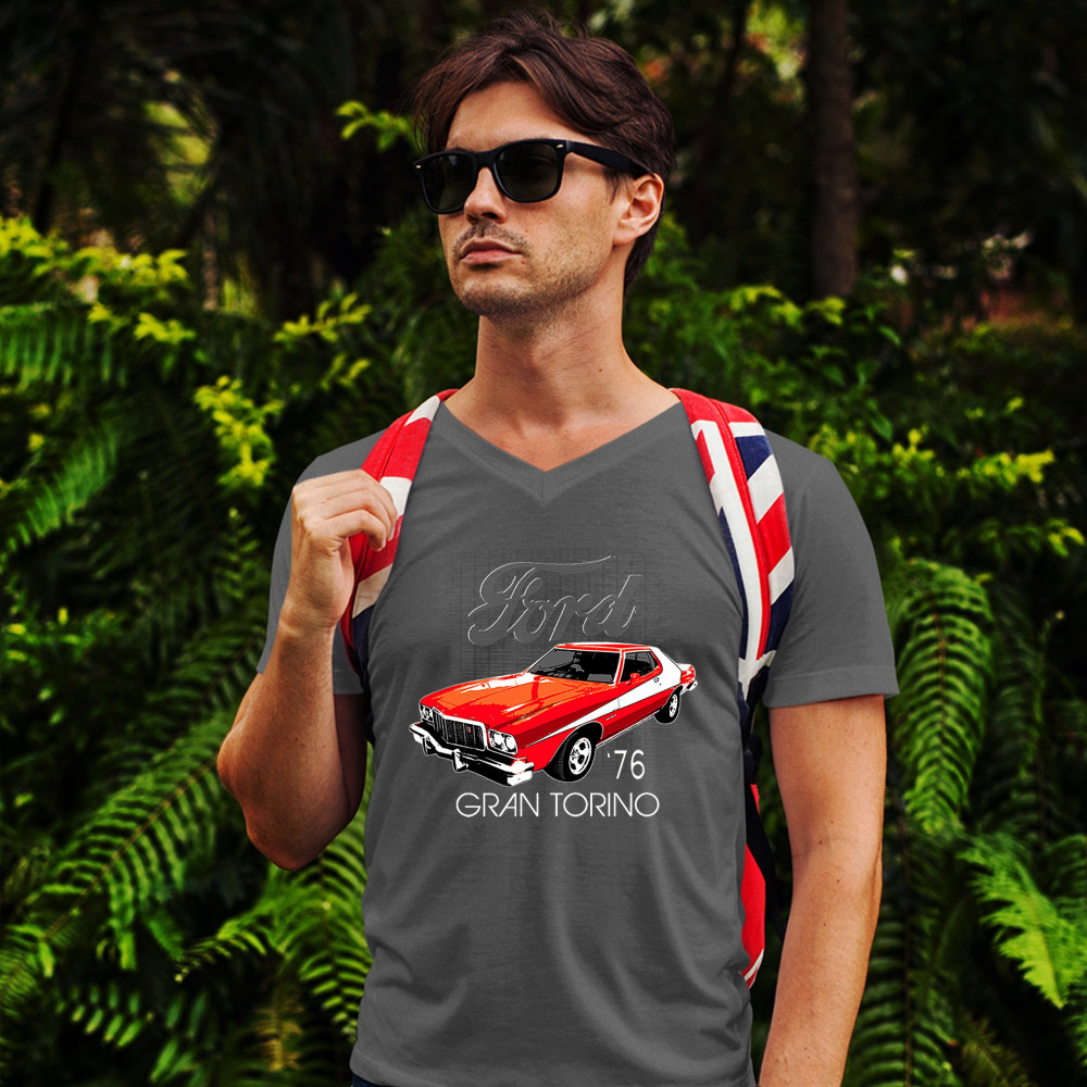 FORD '76 GRAN TORINO v-neck t-shirt 1976 american muscle car licensed tee charcoal