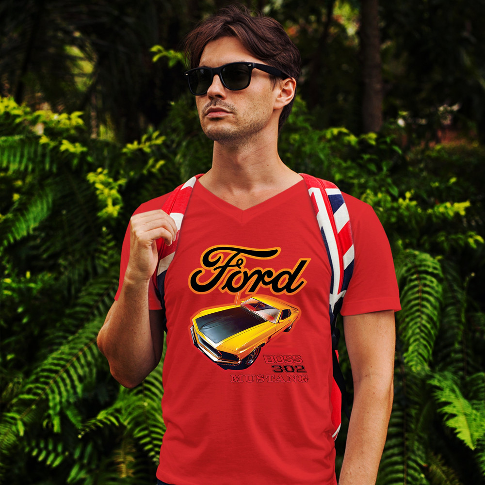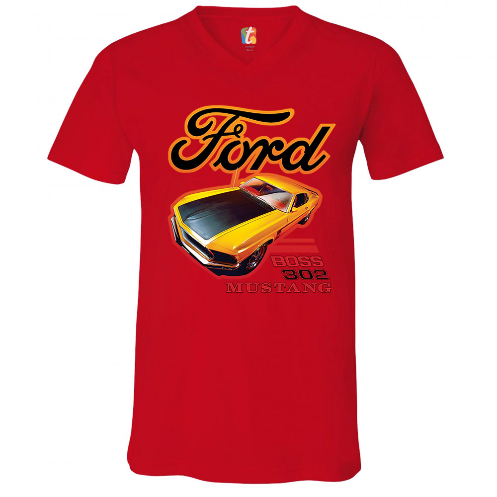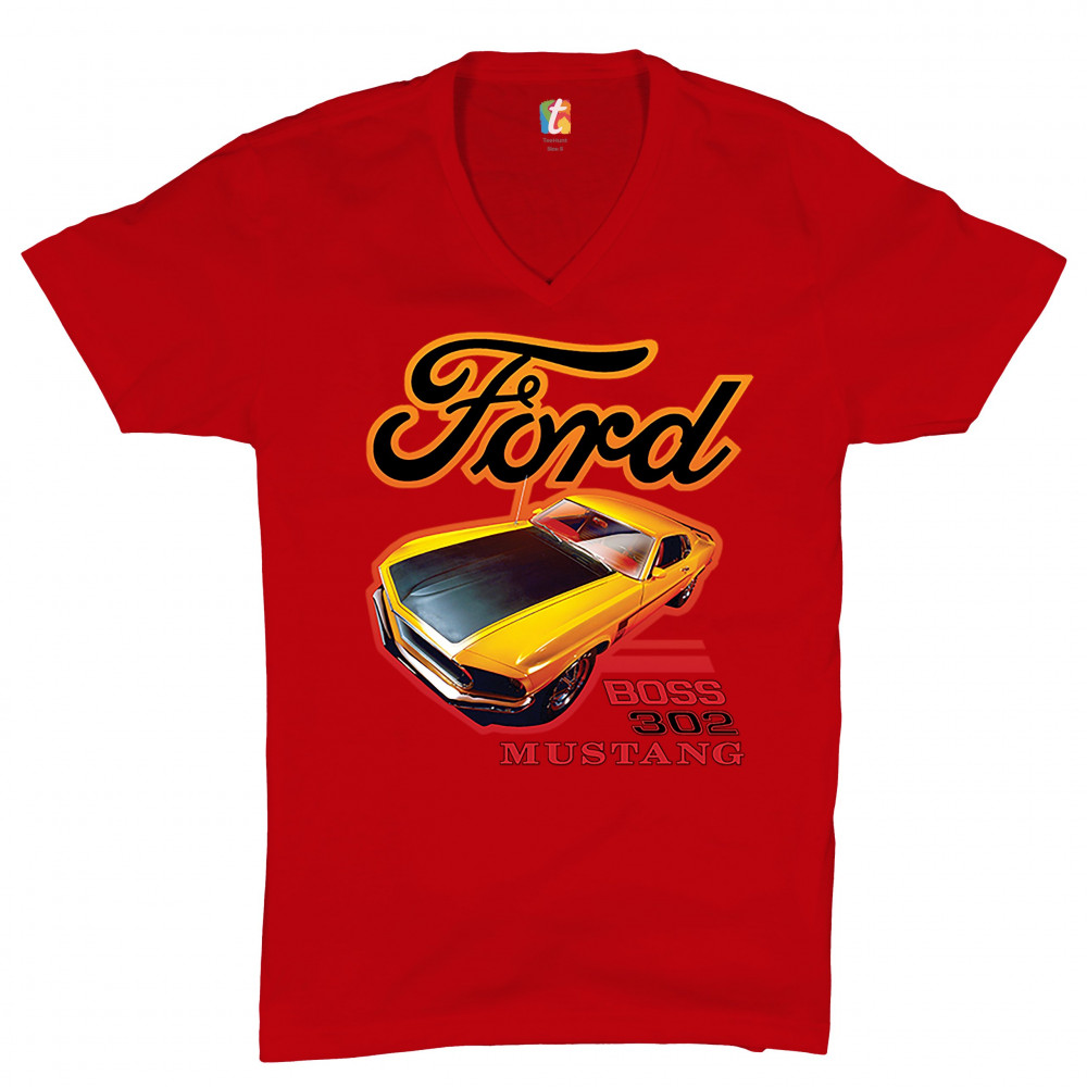FORD BOSS 302 MUSTANG v-neck t-shirt vintage american muscle car licensed tee red