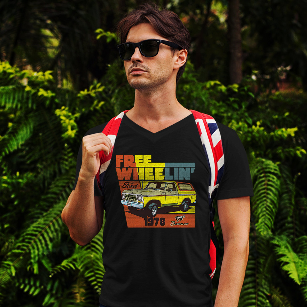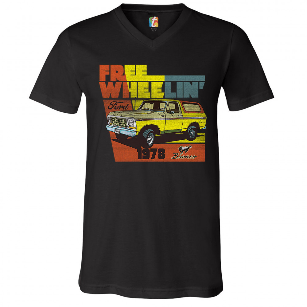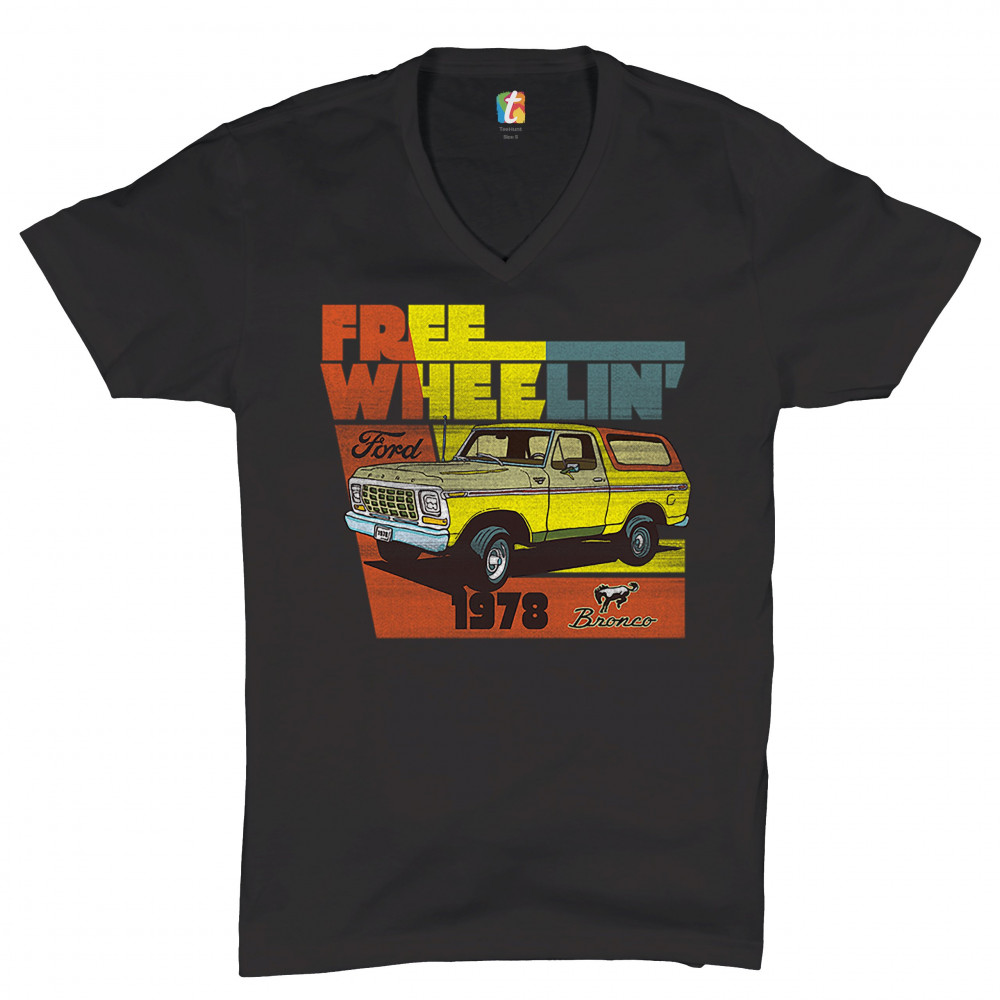 FORD BRONCO 1978 v-neck t-shirt free wheelin' offroad truck suv licensed tee black