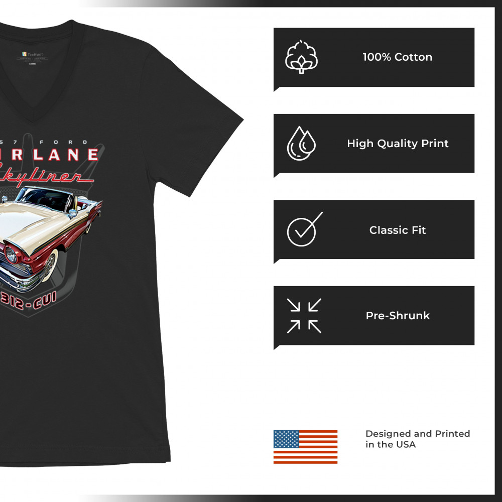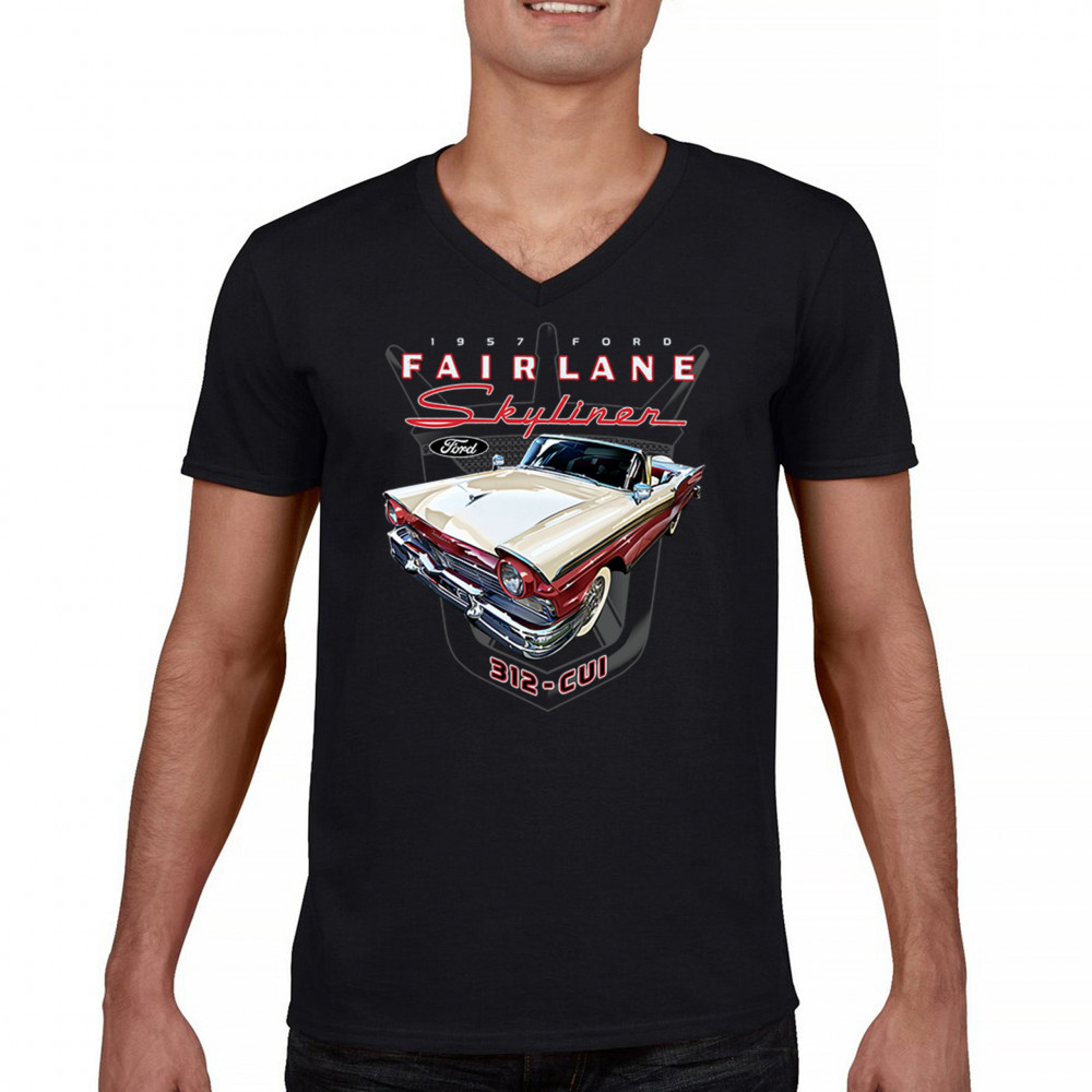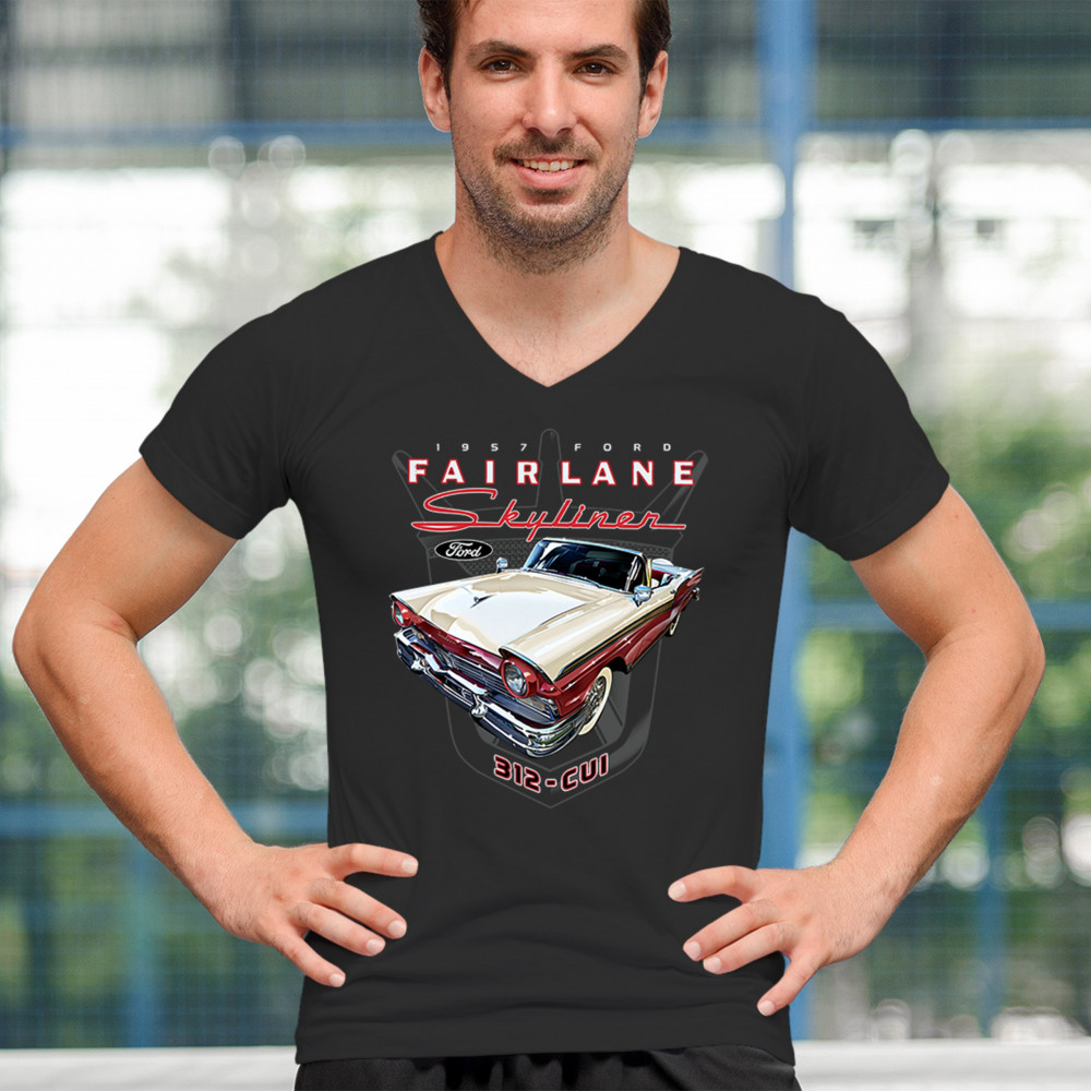FORD FAIRLANE SKYLINER CREST v-neck t-shirt 1957 vintage classic fomoco tee black