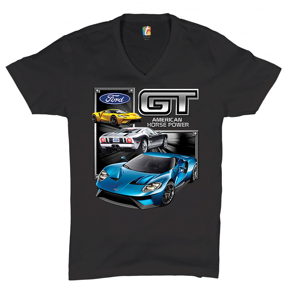 FORD GT AMERICAN HORSE POWER v-neck t-shirt sports race car licensed tee black