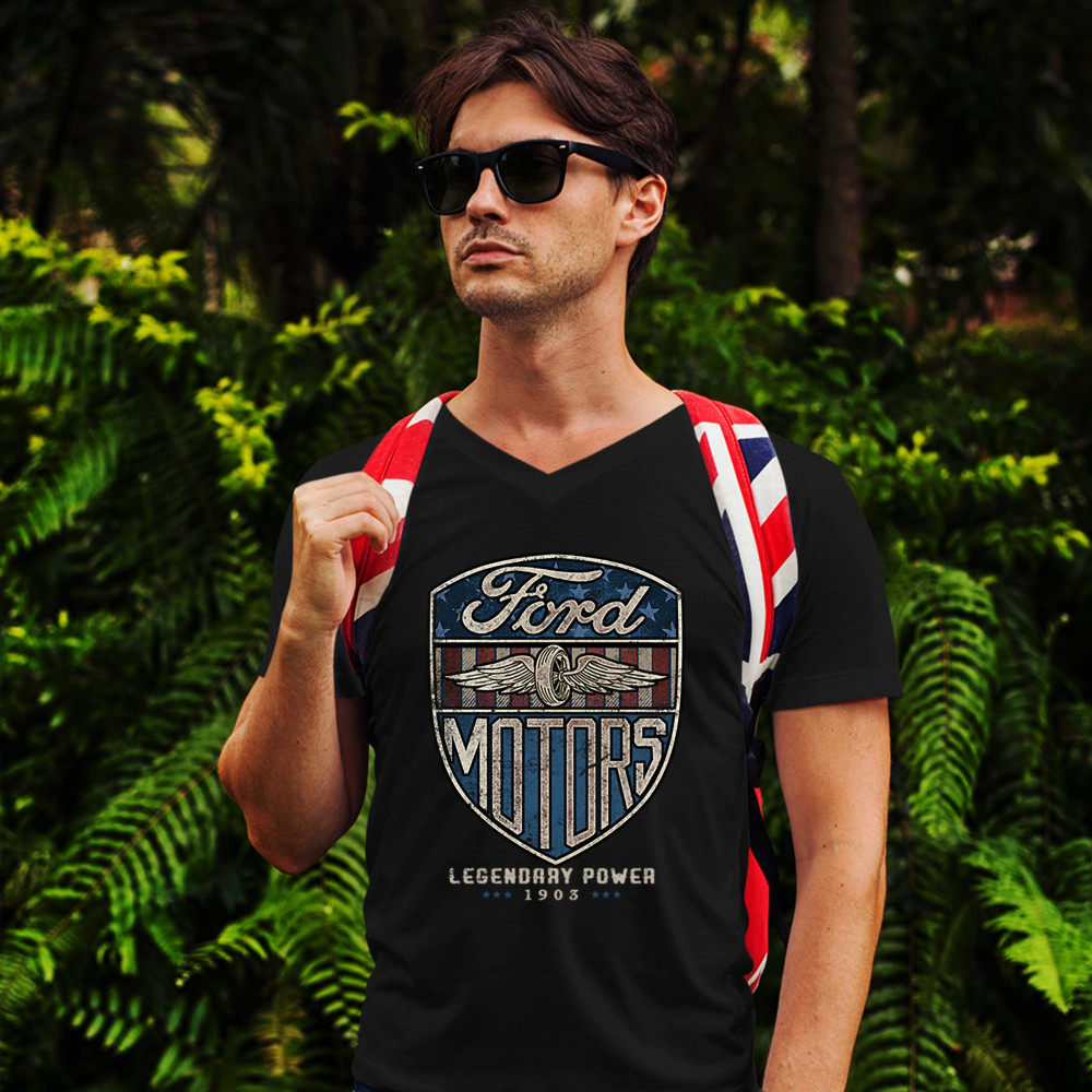 FORD MOTORS LEGENDARY POWER v-neck t-shirt fomoco licensed automotive tee black
