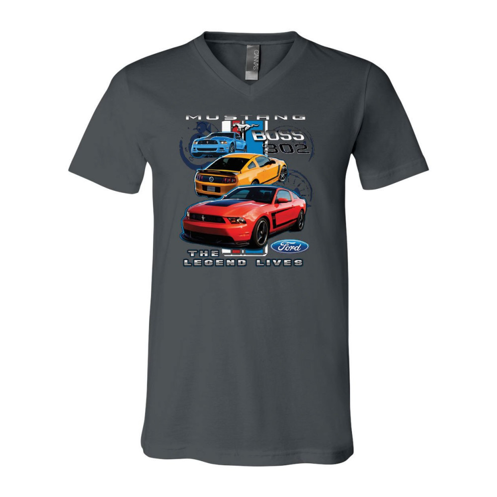 FORD MUSTANG THE LEGEND LIVES HOODED v-neck t-shirt 0 tee charcoal