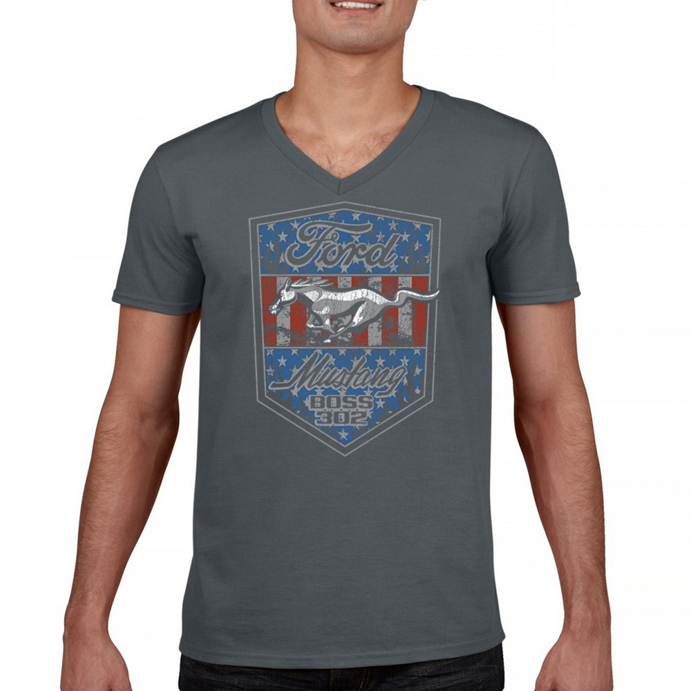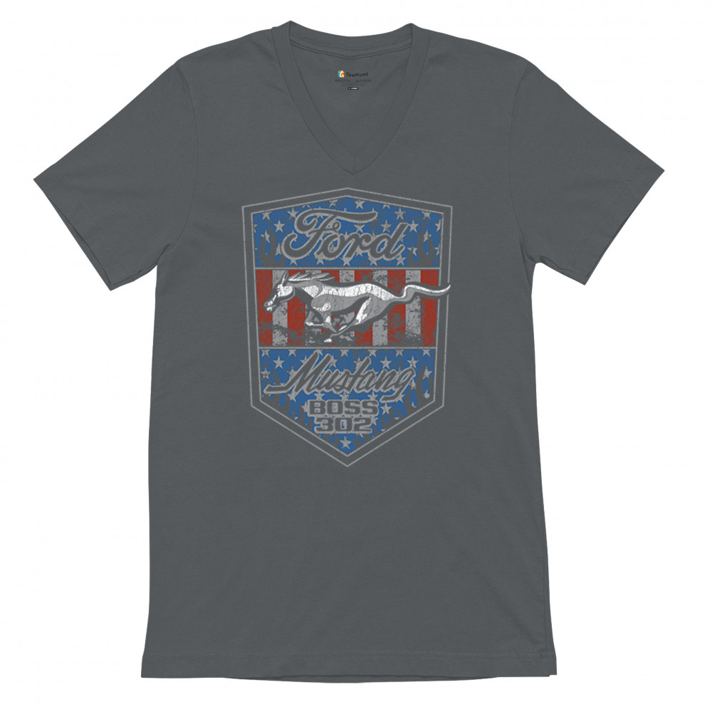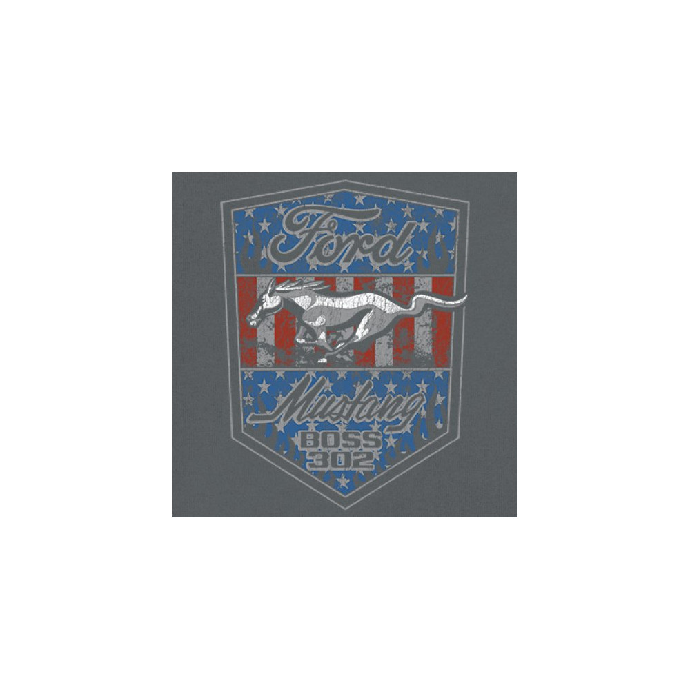 Honor the Ford Mustang Boss 302 legacy with this officially licensed patriotic design, featuring bold flames, the iconic running Mustang, and vintage American muscle style.