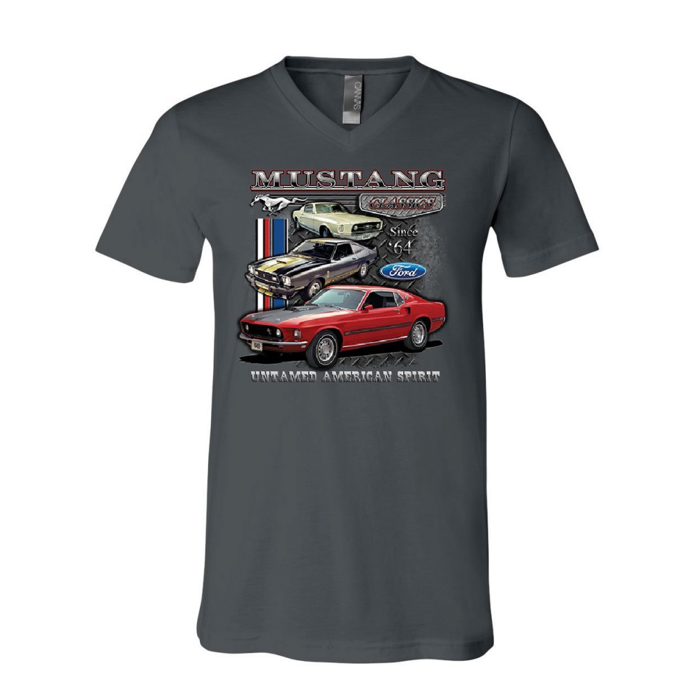 FORD MUSTANG CLASSICS v-neck t-shirt muscle car untamed american spirit tee charcoal