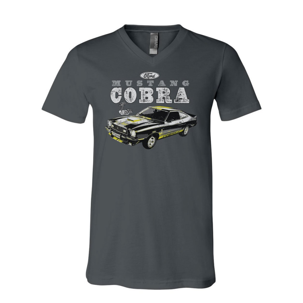 FORD MUSTANG COBRA v-neck t-shirt american classic muscle car licensed tee charcoal