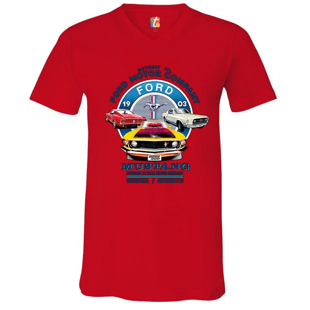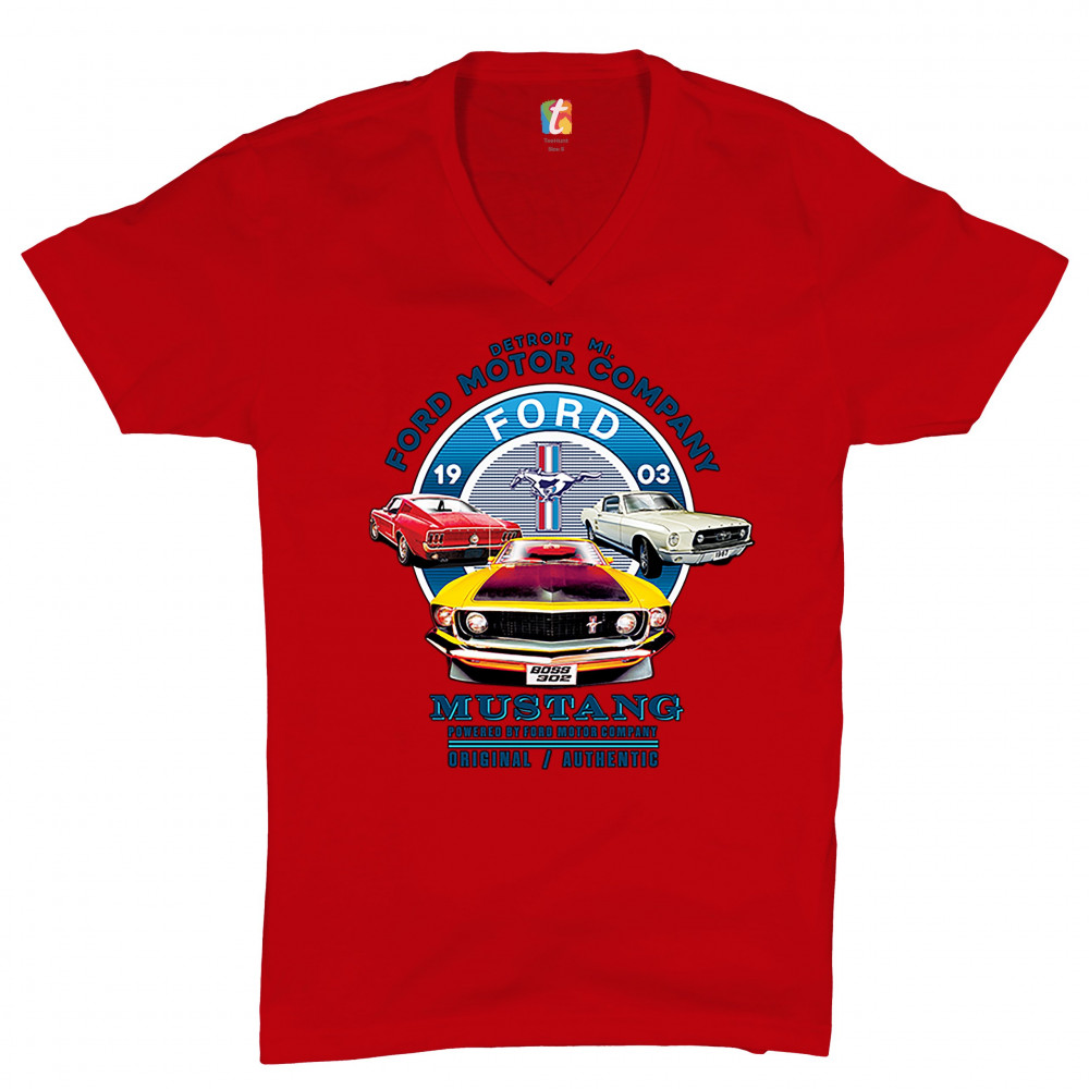 A print featuring three classic Ford Mustangs and their logo in the center. The print says: "Detroit Mi. Ford Motor Company, 1903 Ford Mustang, Powered by Ford Motor Company, Original/Authentic". A great choice for anyone who is a fan of old school Ford M