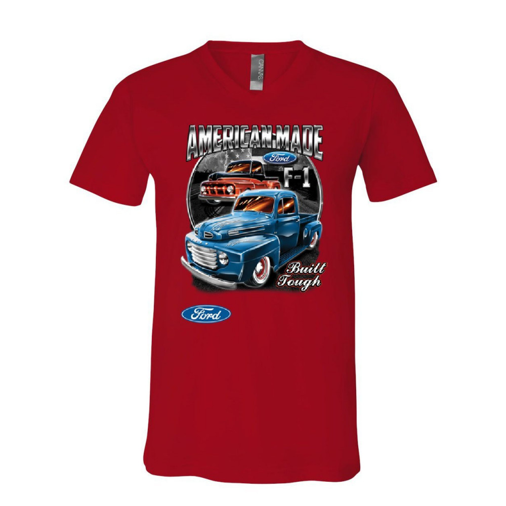 FORD PICKUP TRUCKS F1 v-neck t-shirt american made hot rod built tough tee red