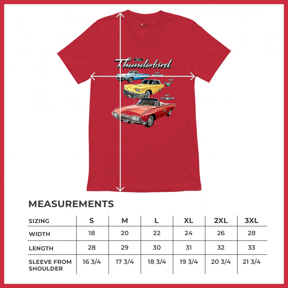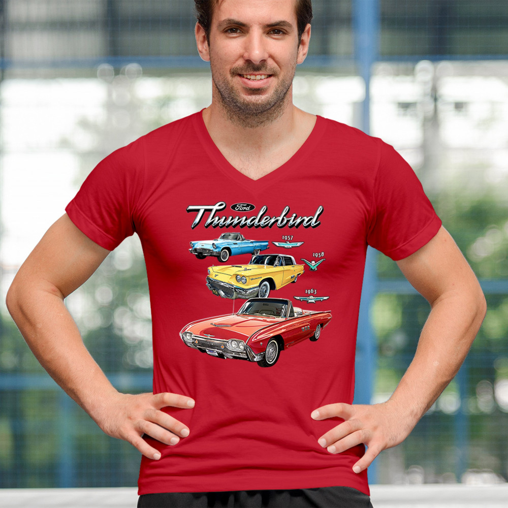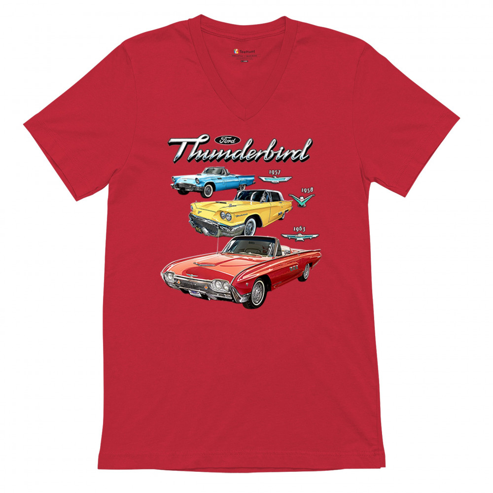 Iconic Ford Thunderbird design with 1957, 1958, and 1963 models. A vintage tribute for car collectors and American muscle fans.