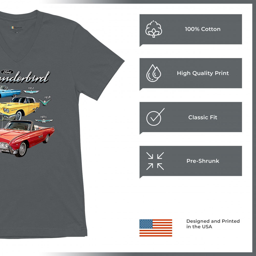 Iconic Ford Thunderbird design with 1957, 1958, and 1963 models. A vintage tribute for car collectors and American muscle fans.