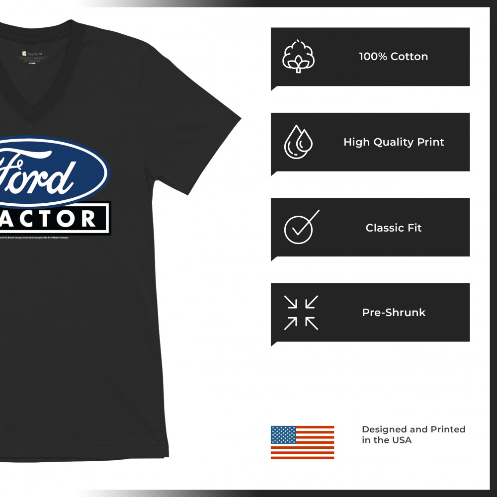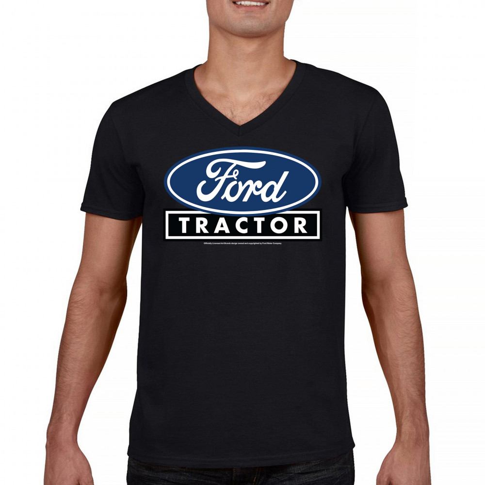 FORD TRACTOR LOGO BLUE v-neck t-shirt vintage farm rustic classic retro tee black