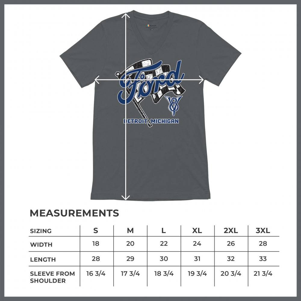 Honor Detroit, Michigan’s Ford legacy with this officially licensed design featuring a checkered flag and bold V8 emblem, perfect for muscle car fans and classic car lovers.